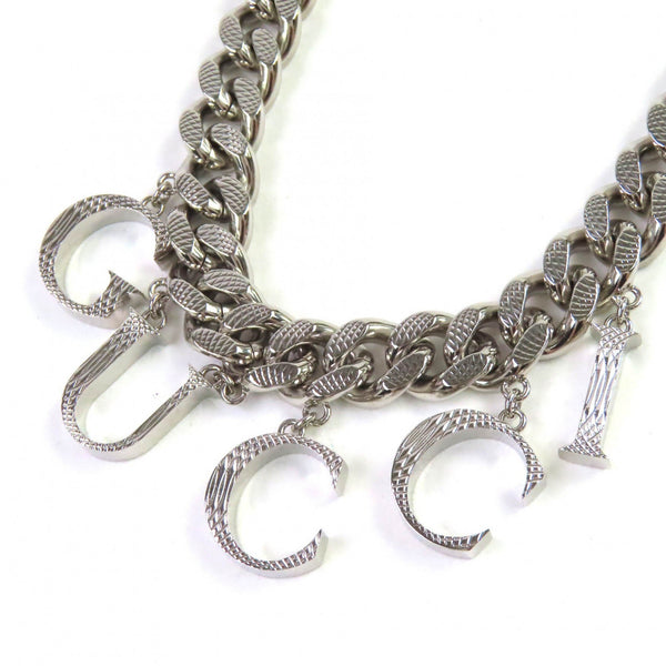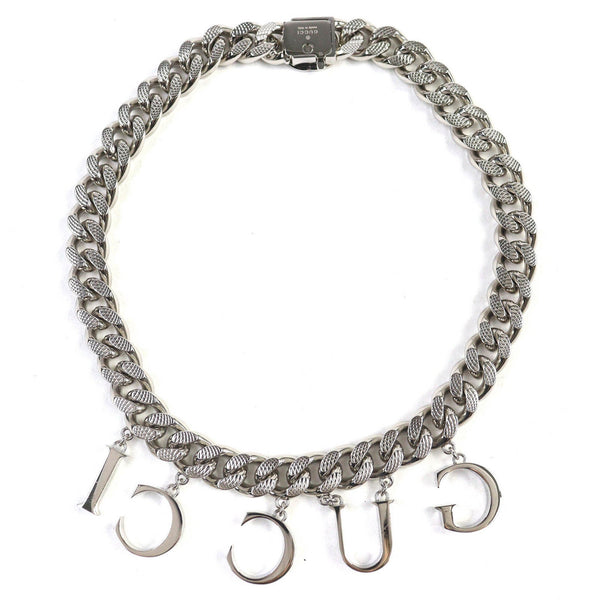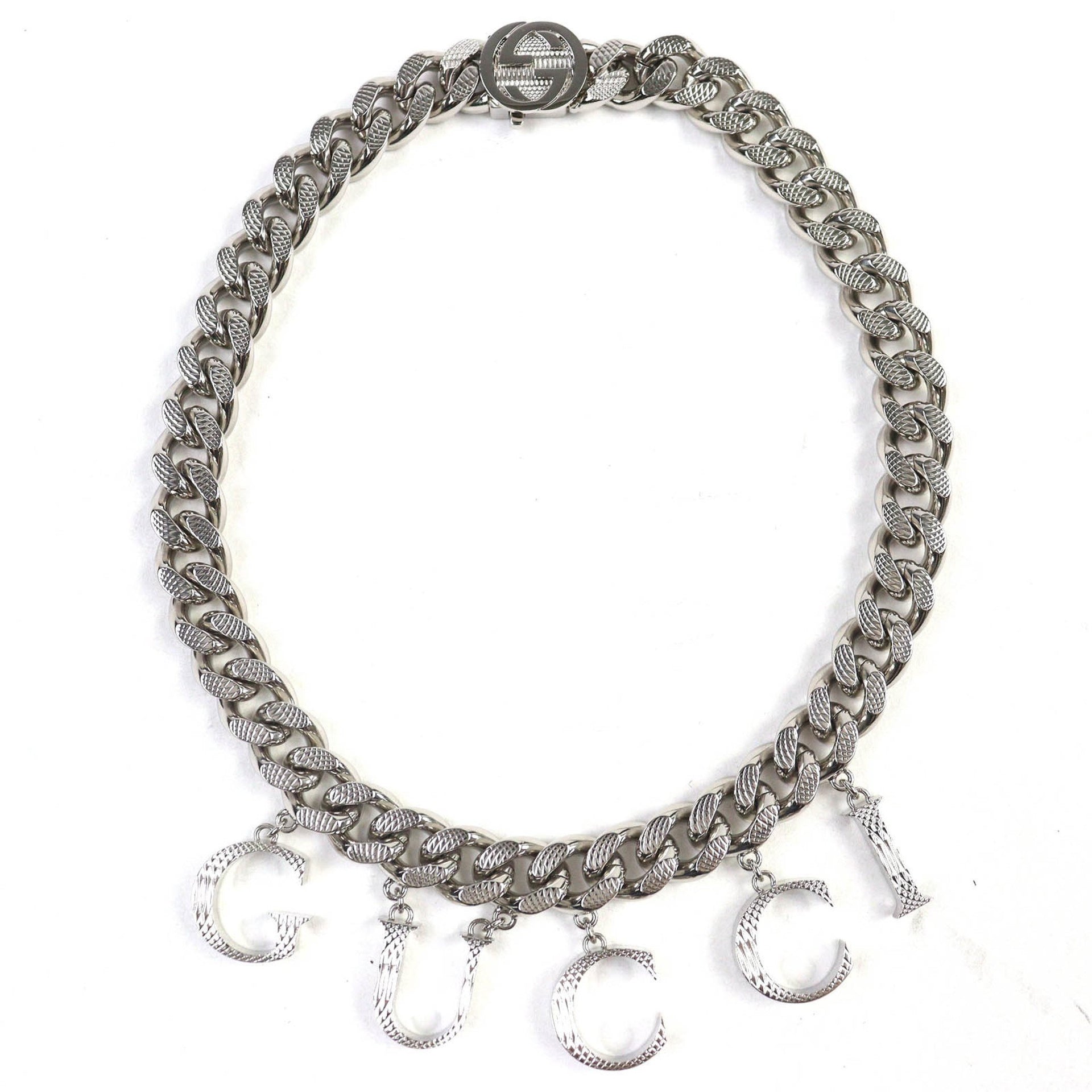 GUCCI 675769 Script Logo Choker with Interlocking G Necklace, Silver, Made in Italy, Women\'s
