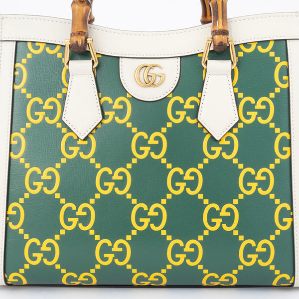 Gucci Diana Small Handbag 660195 Leather Green|Yellow Women\'s Bamboo Tote GUCCI