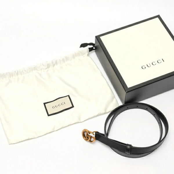 Gucci Double G Buckle Leather Belt 409417 Black #75 S-158909