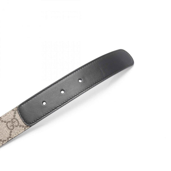 Gucci Double G GG Supreme Belt, Leather, Women\'s, Beige, Black