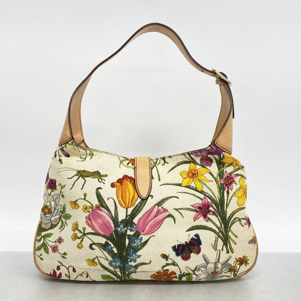 Gucci Flora New Jackie Shoulder Bag 137335 Canvas Beige Multicolor Champagne Women\'s