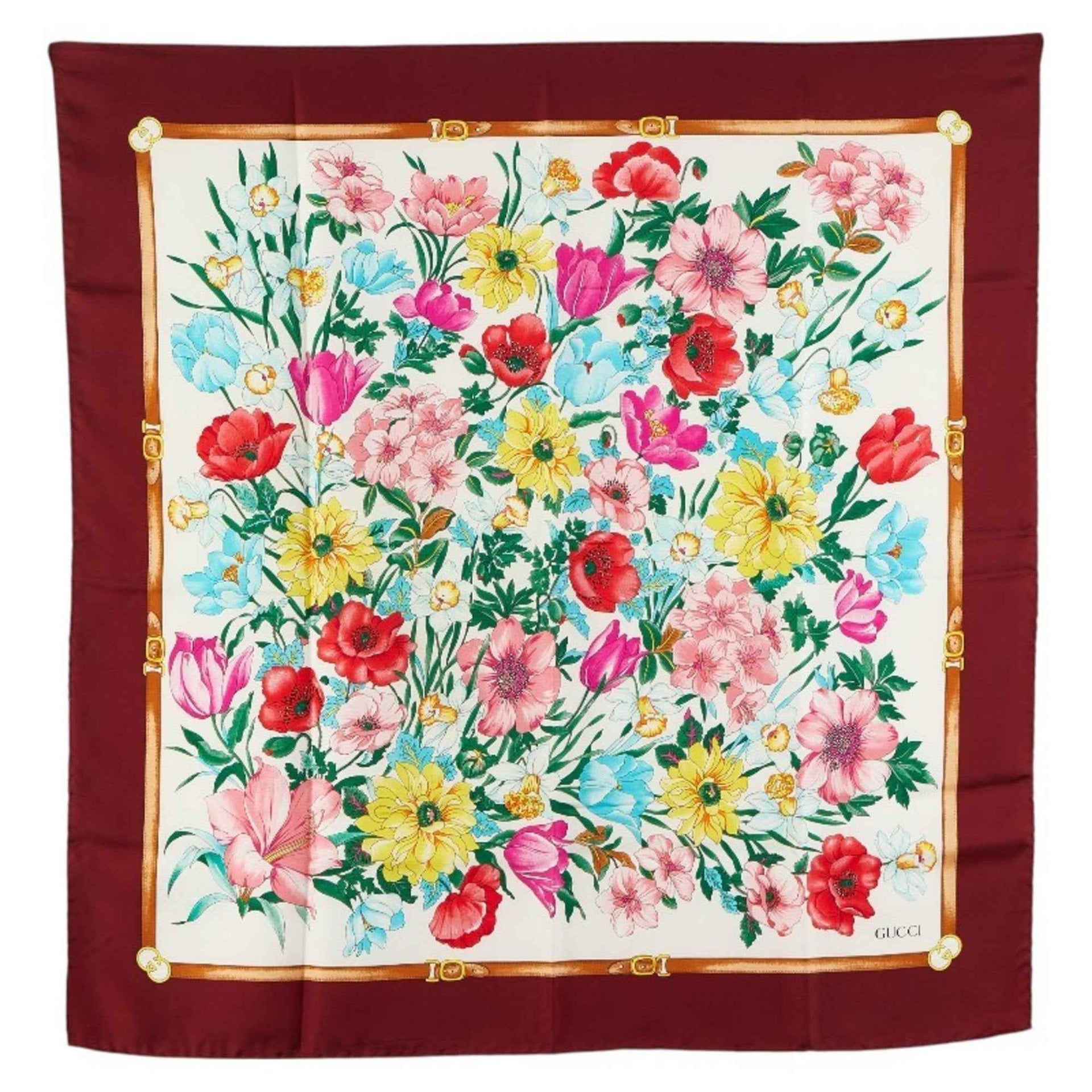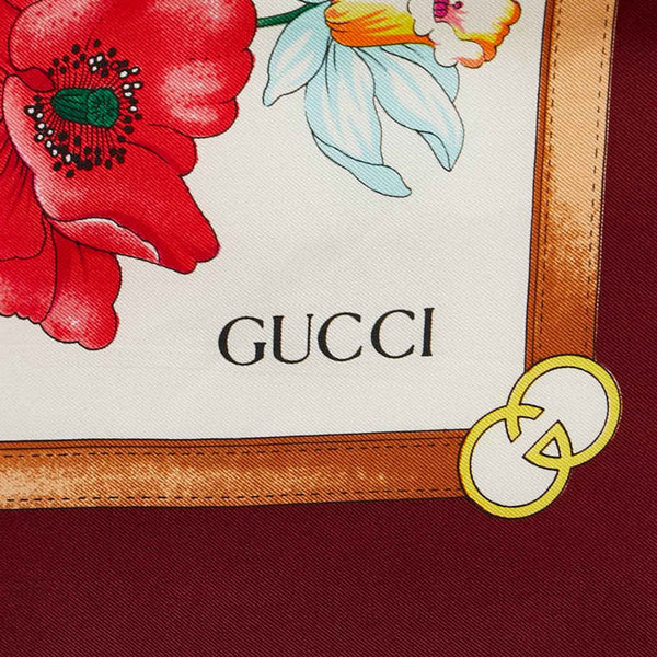 Gucci Flora Scarf/Muffler in Wine Red and Multicolor Silk for Women