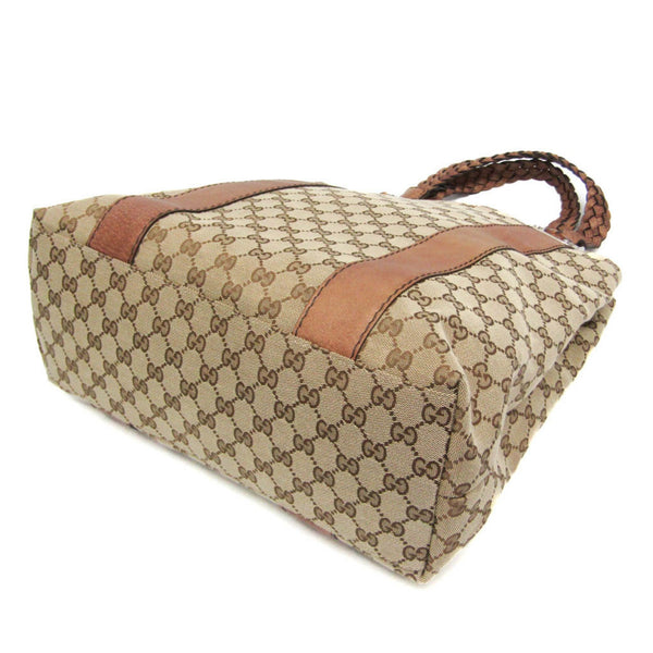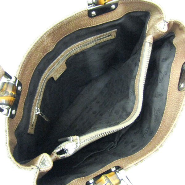 Gucci GG Canvas Bamboo 232946 Women\'s GG Canvas,Leather Tote Bag Beige
