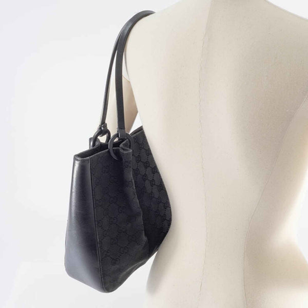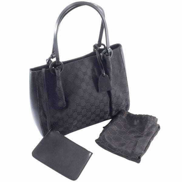 Gucci GG Canvas Leather Tote Bag 101919 Black Women\'s Handbag GUCCI