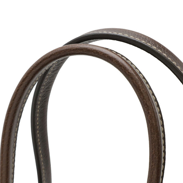 GUCCI GG Canvas Princess Line Ribbon Tote Bag Shoulder Leather Khaki Beige Dark Brown 163805