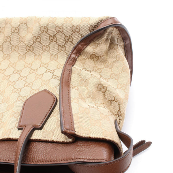 Gucci GG Canvas Tote Bag, and Leather, Women\'s, Beige/Brown, 370822