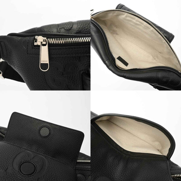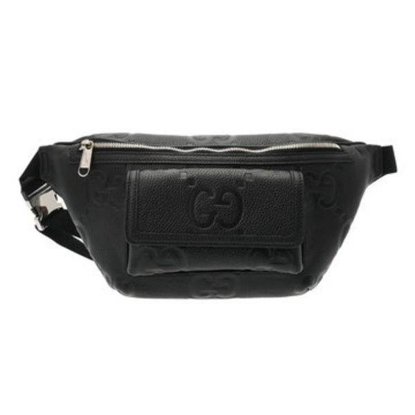 GUCCI GG Embossed Belt Bag, Black, 645093, Men\'s Leather Waist Bag