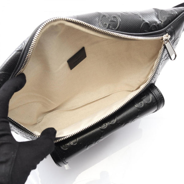 Gucci GG embossed leather waist bag/body bag for men and women, black, 645093
