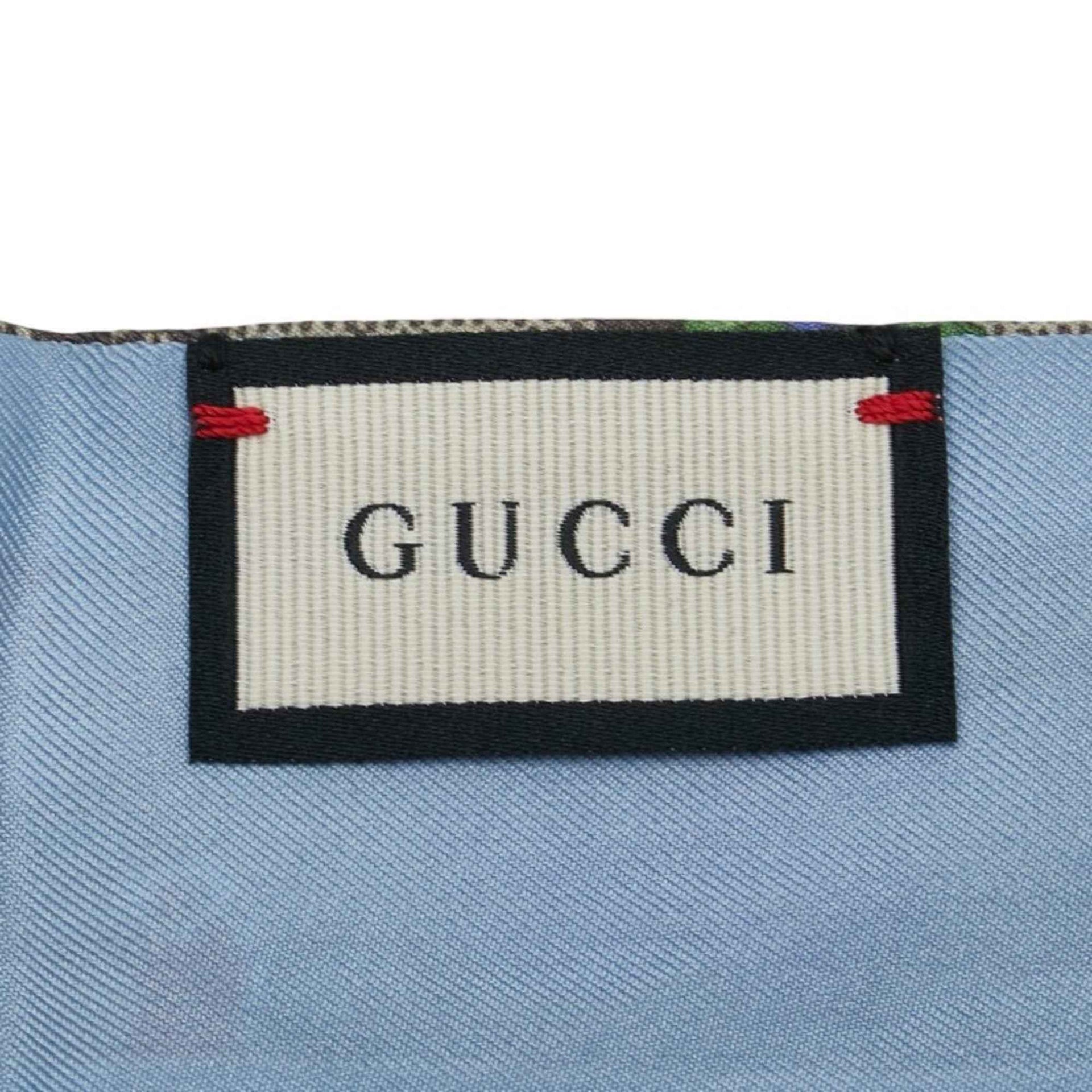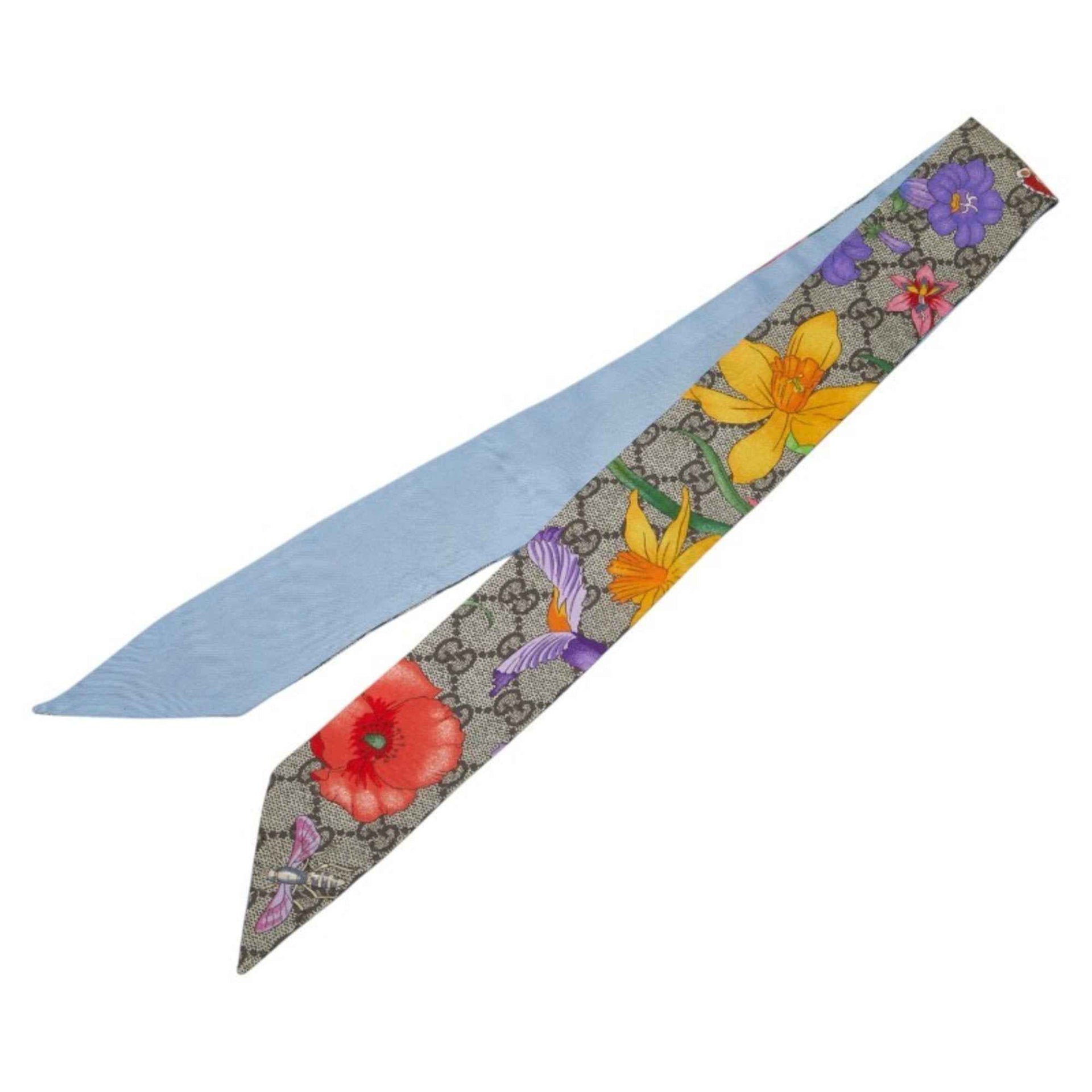 Gucci GG Flora Flower and Butterfly Neck Bow Scarf in Beige Multicolor Silk for Women