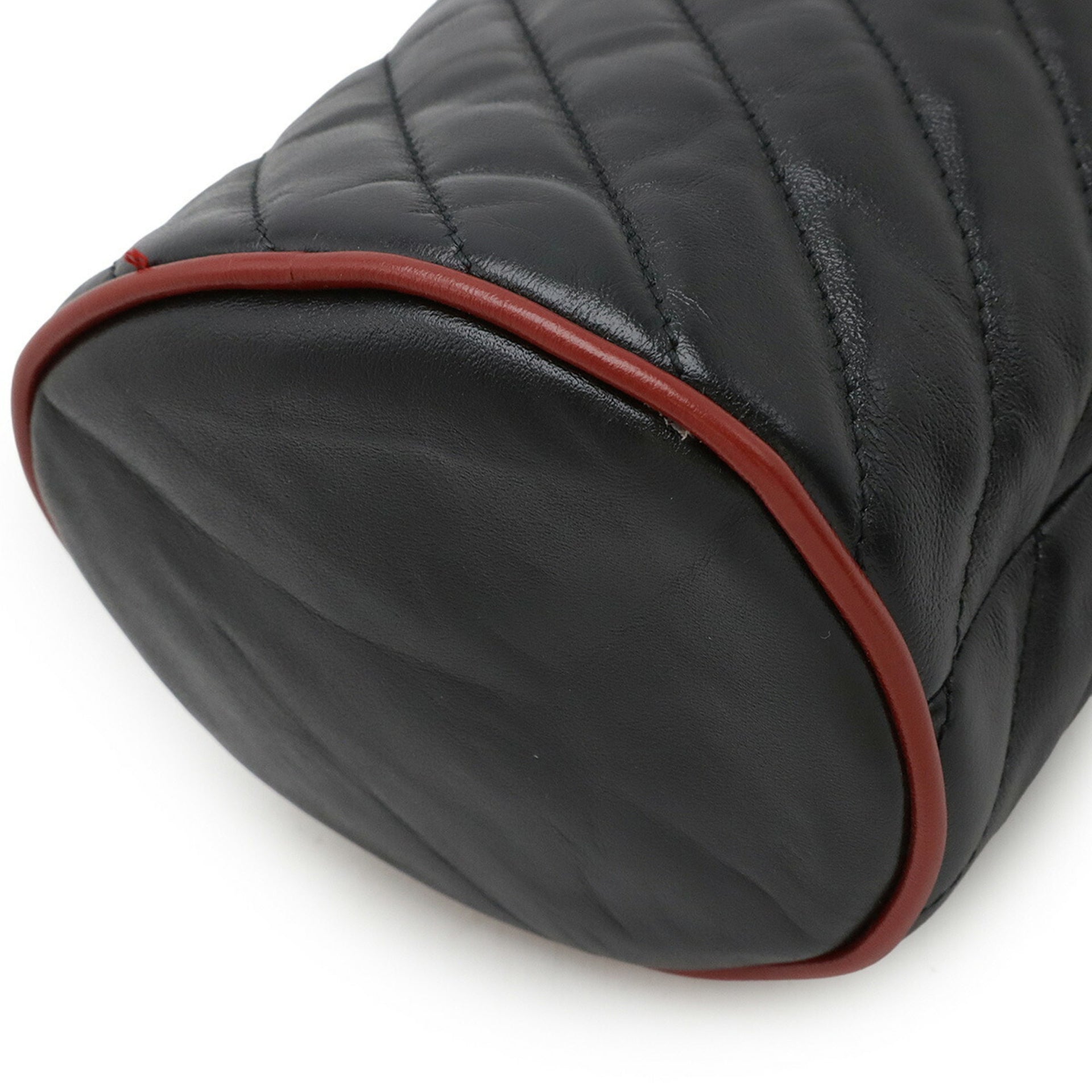 GUCCI GG Marmont Mini Bucket Bag, Shoulder Chain Leather, Black, Red, 573817