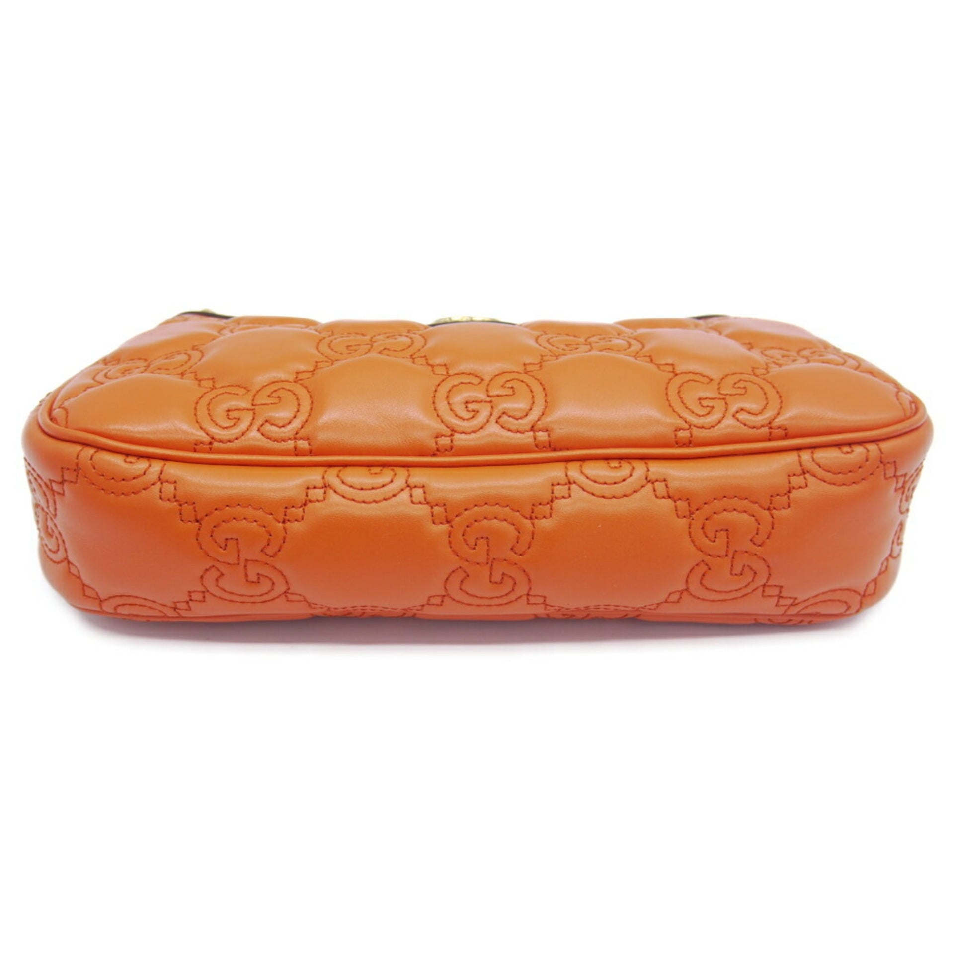 GUCCI GG Matelasse Leather Handbag Chain Shoulder Bag 341504 493075 Orange