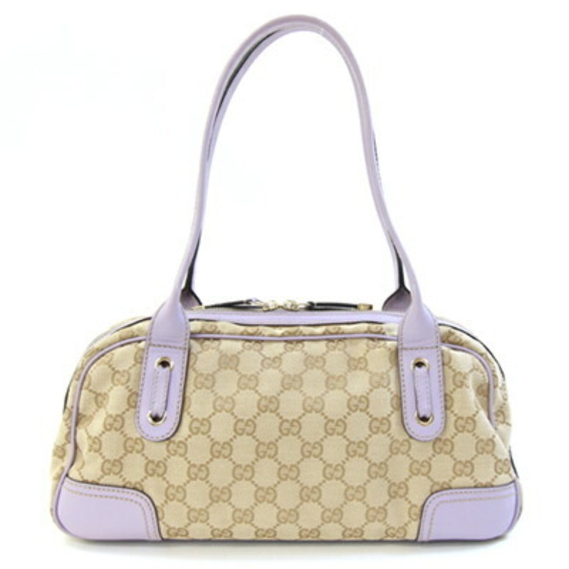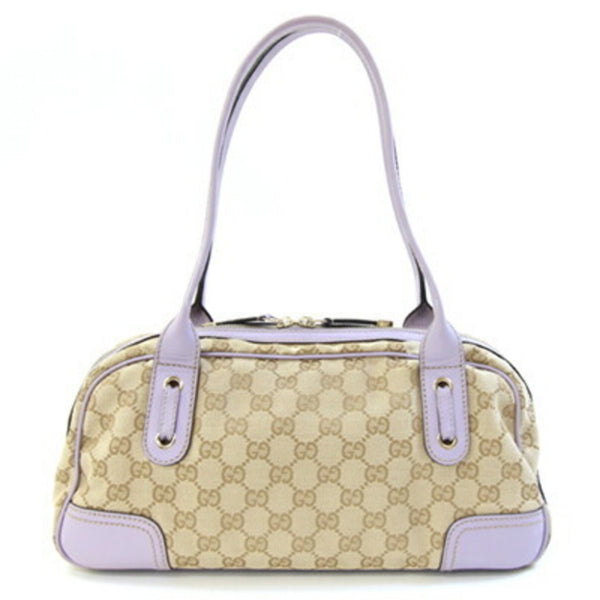 Gucci GG Princess Handbag 161720 Beige Lavender Canvas Leather Shoulder Ribbon GUCCI