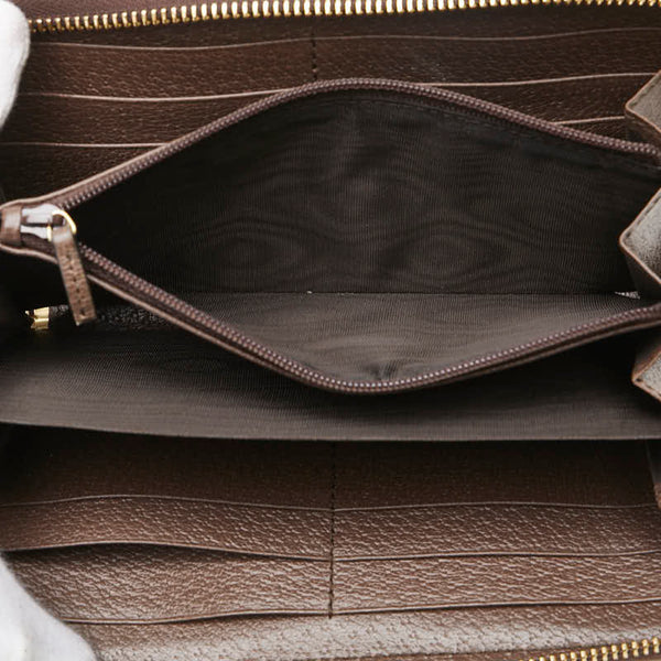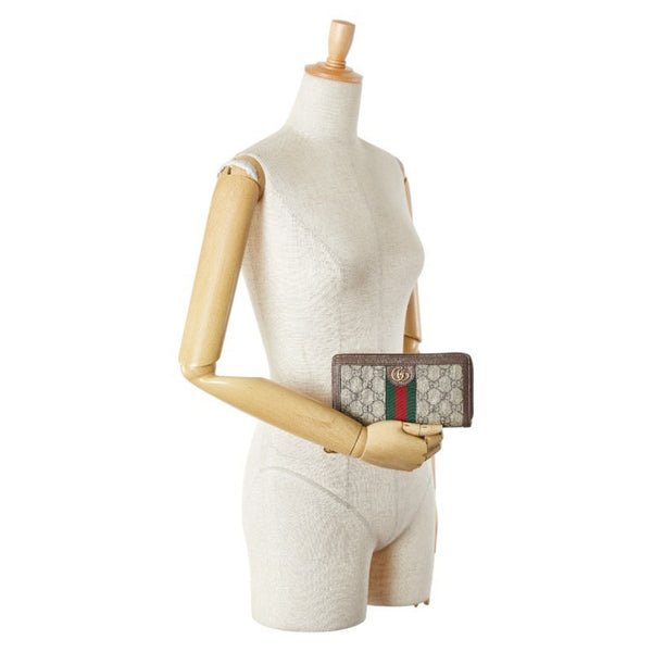 Gucci GG Supreme Sherry Line Ophidia Round Zip Long Wallet 523154 Beige Brown Leather Women\'s GUCCI