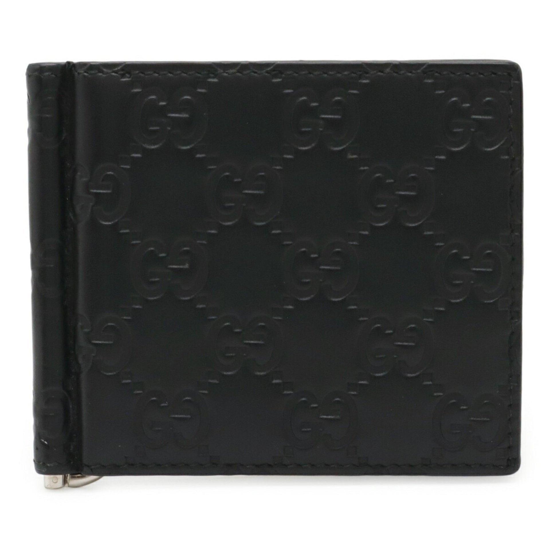 GUCCI Guccissima Bi-fold Wallet with Card Case and Money Clip, Black Leather, 170580