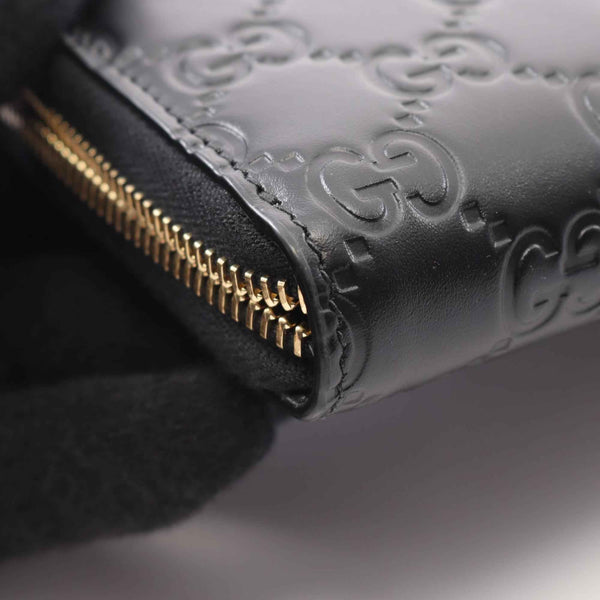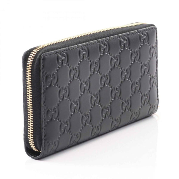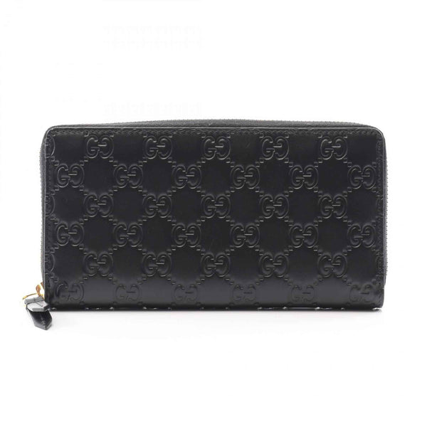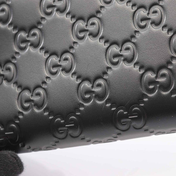Gucci Guccissima Round Long Wallet, Leather, Women\'s, Black, 779786