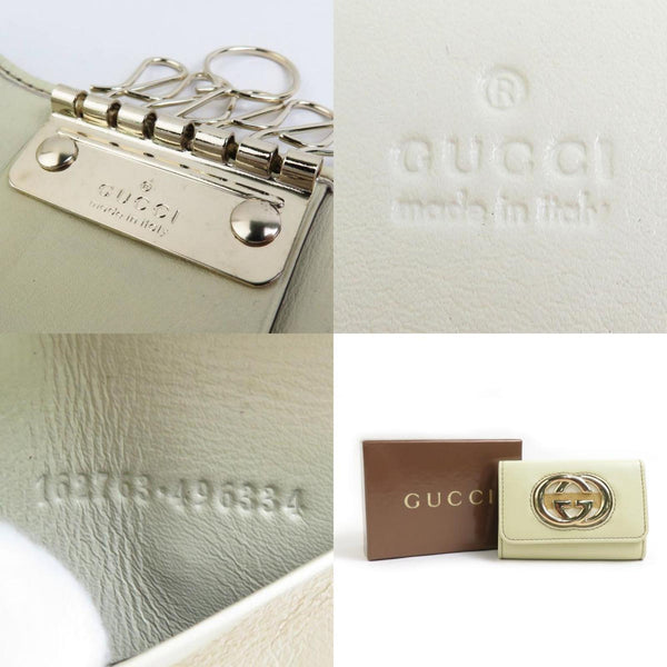 GUCCI Interlocking G Key Case Leather Ivory Men\'s Women\'s 162763 r10614a