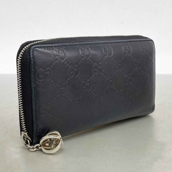 Gucci Long Wallet Guccissima Interlocking G 233025 Leather Black Women\'s