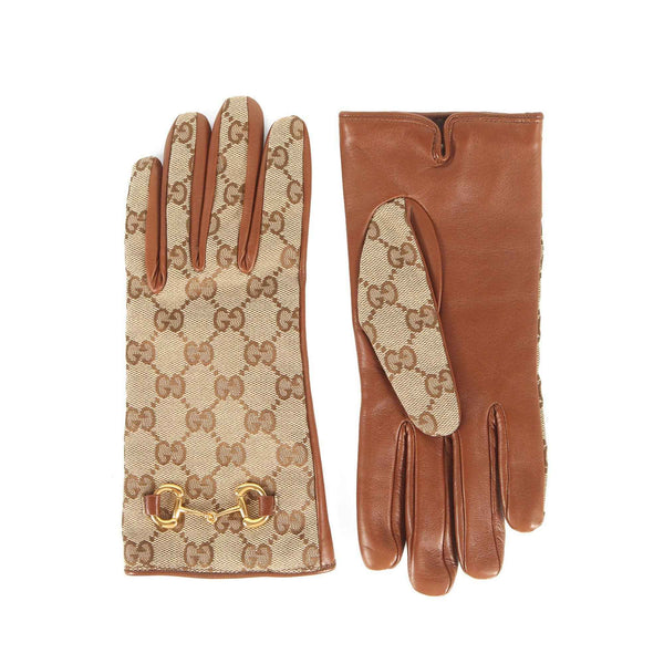 GUCCI Men\'s Brown GG Monogram Lamb Leather Gloves with Gold Bits, Size M (7 1/2), 2022AW, K4618