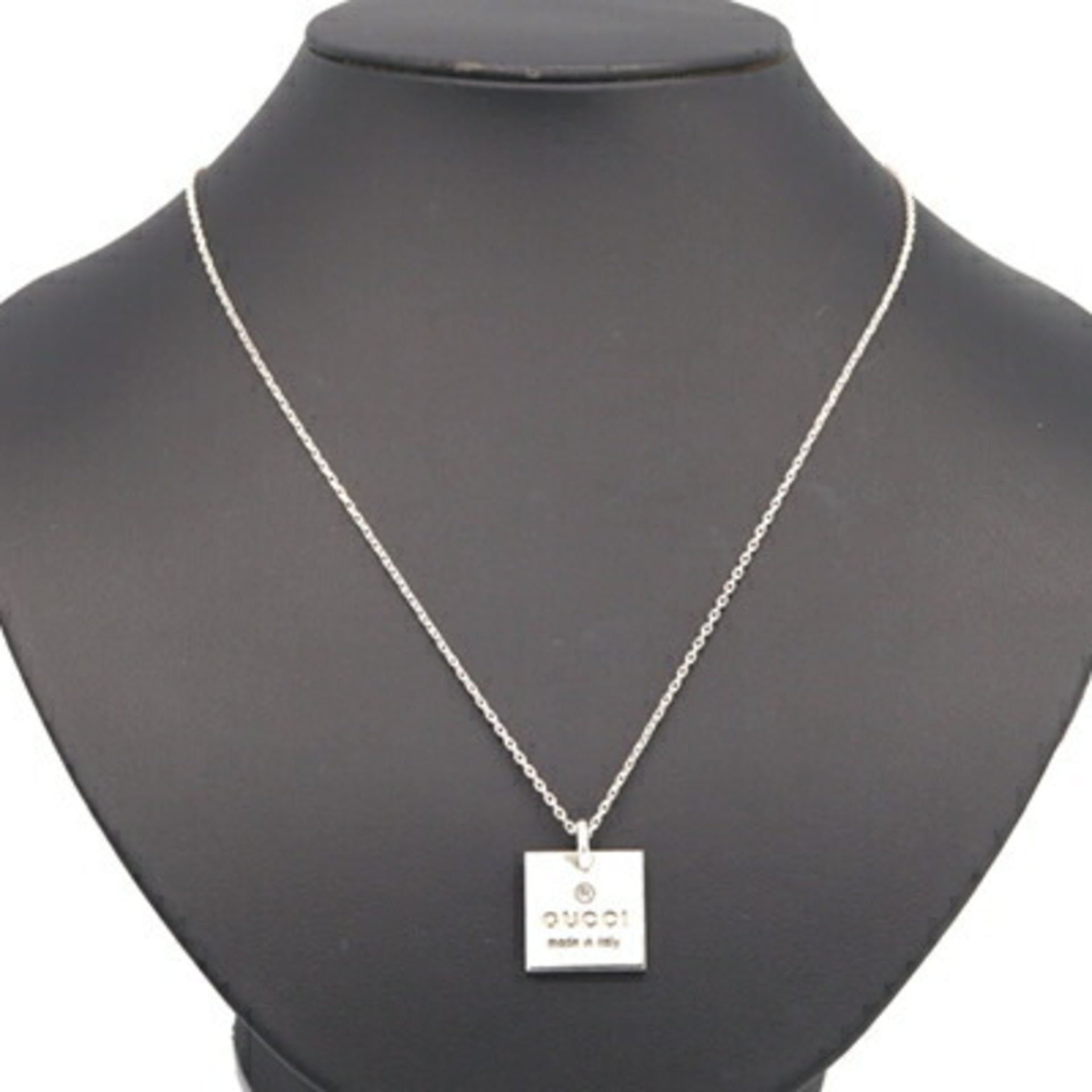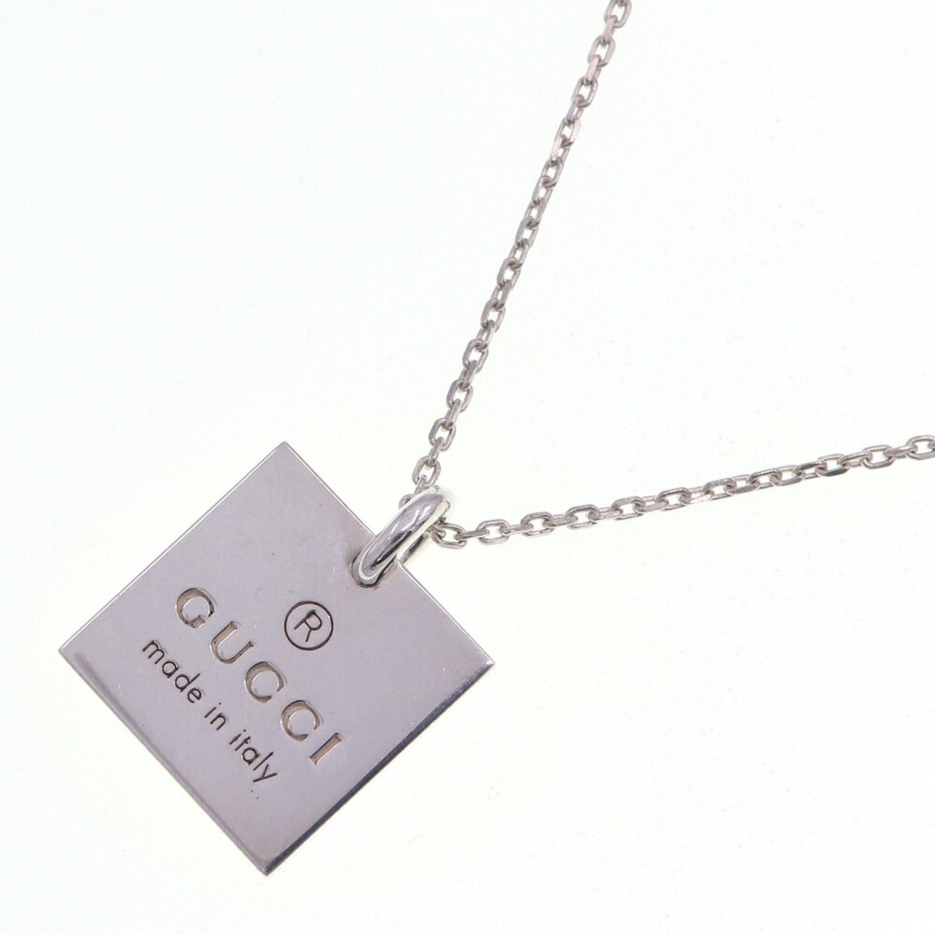 Gucci Necklace Square Plate 223869 SV Sterling Silver 925 Pendant Women\'s Men\'s GUCCI