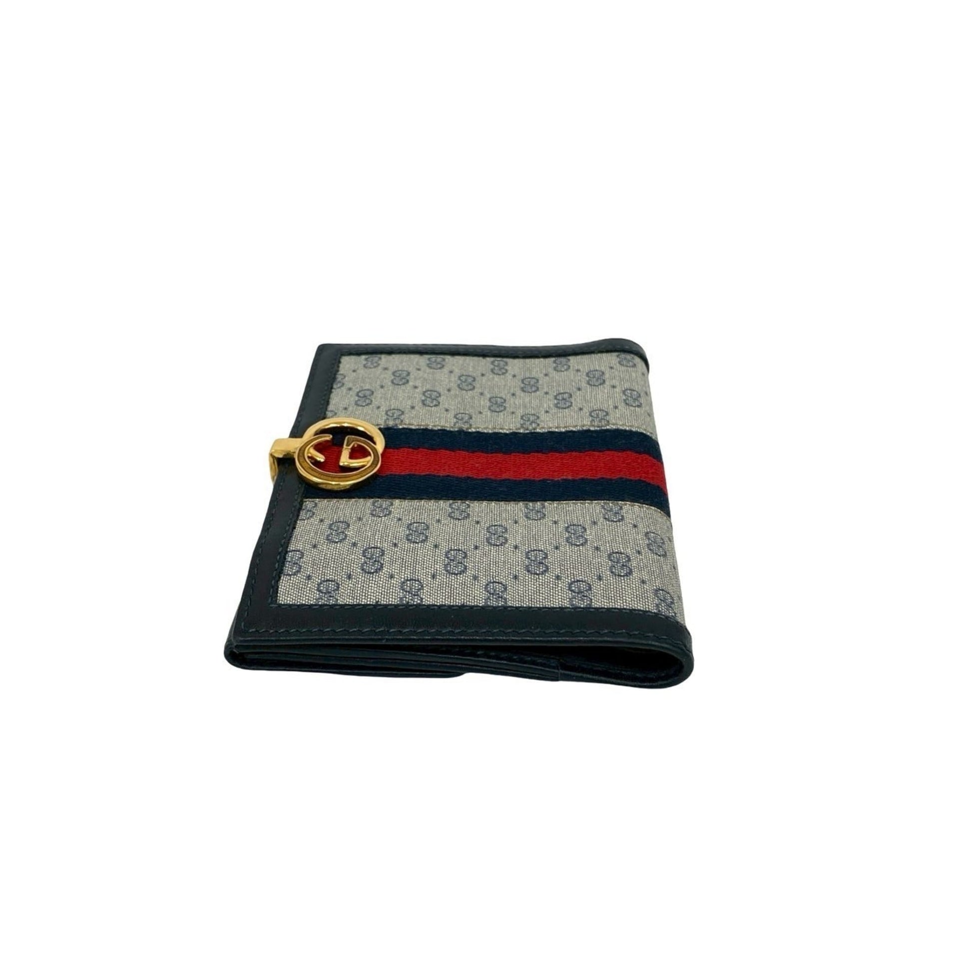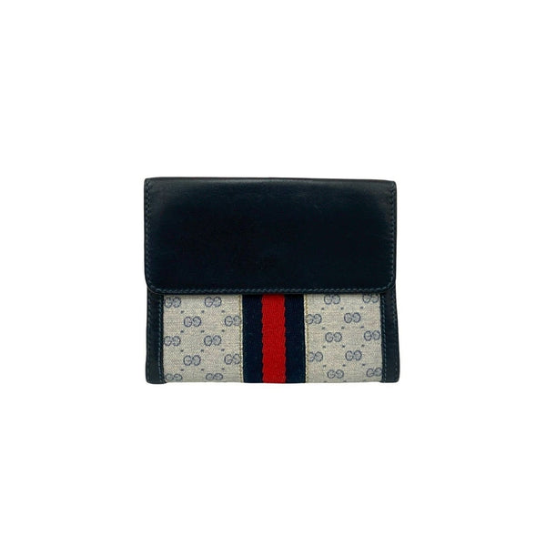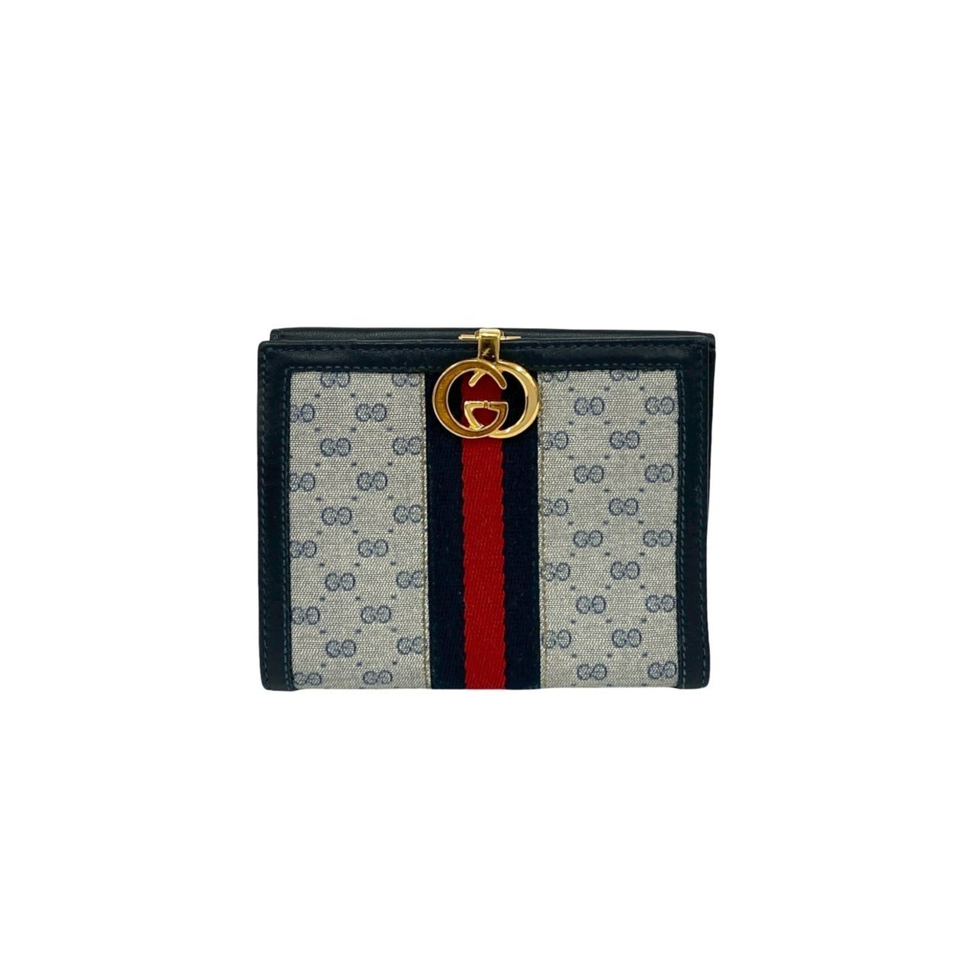 GUCCI Old Gucci Sherry Line GG Logo All-Over Print Leather Bifold Wallet Navy 32571