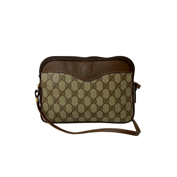 GUCCI Old Gucci Vintage GG Logo Leather Shoulder Bag/Pochette/Sacoche Brown 46684