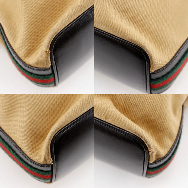 Gucci Sherry Line Shoulder Bag 001-4288 Beige Canvas A5 Double Women\'s B-Rank