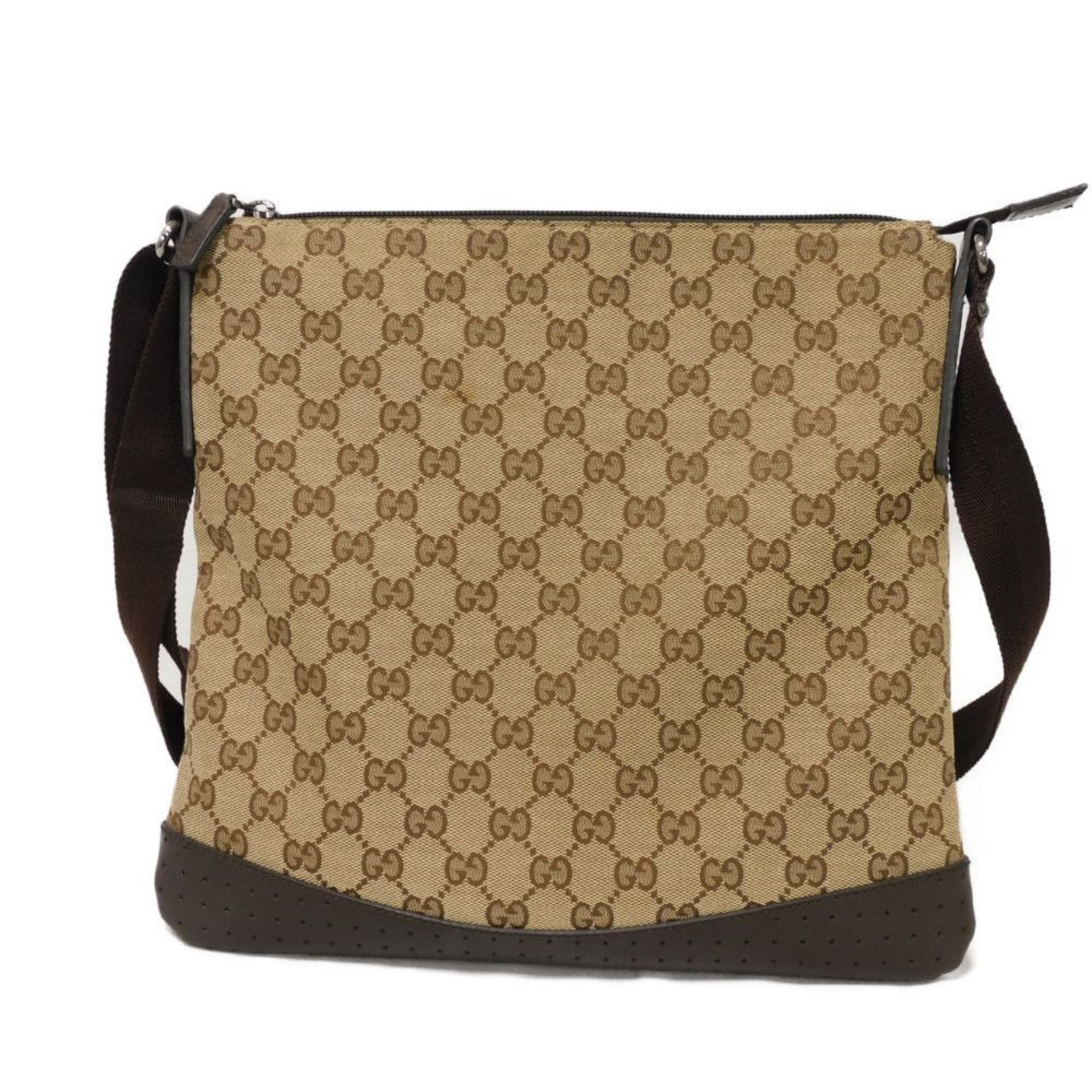 Gucci shoulder bag, perforated leather, embossed calfskin, brown, GG canvas, beige, 145857, for men and women.