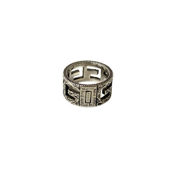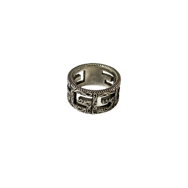 GUCCI Square G Arabesque Ring, 925 Sterling Silver, Size 15, 22821