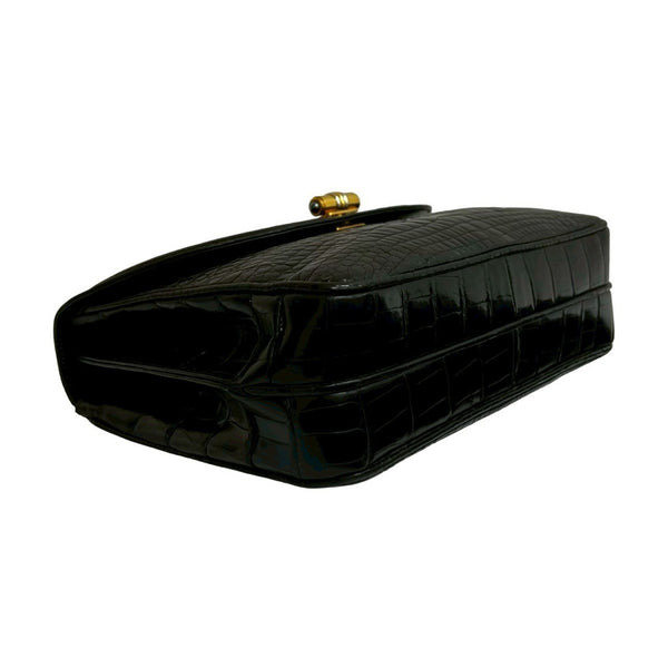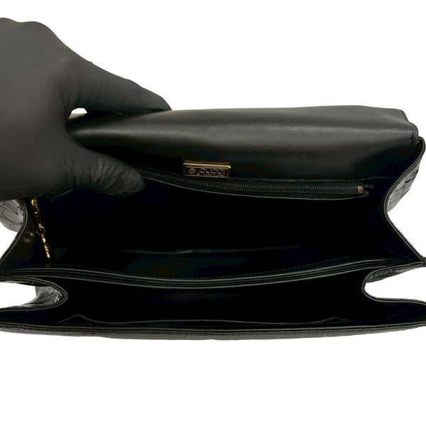 GUCCI Vintage Turnlock Crocodile-Embossed Leather Handbag in Black (38216)