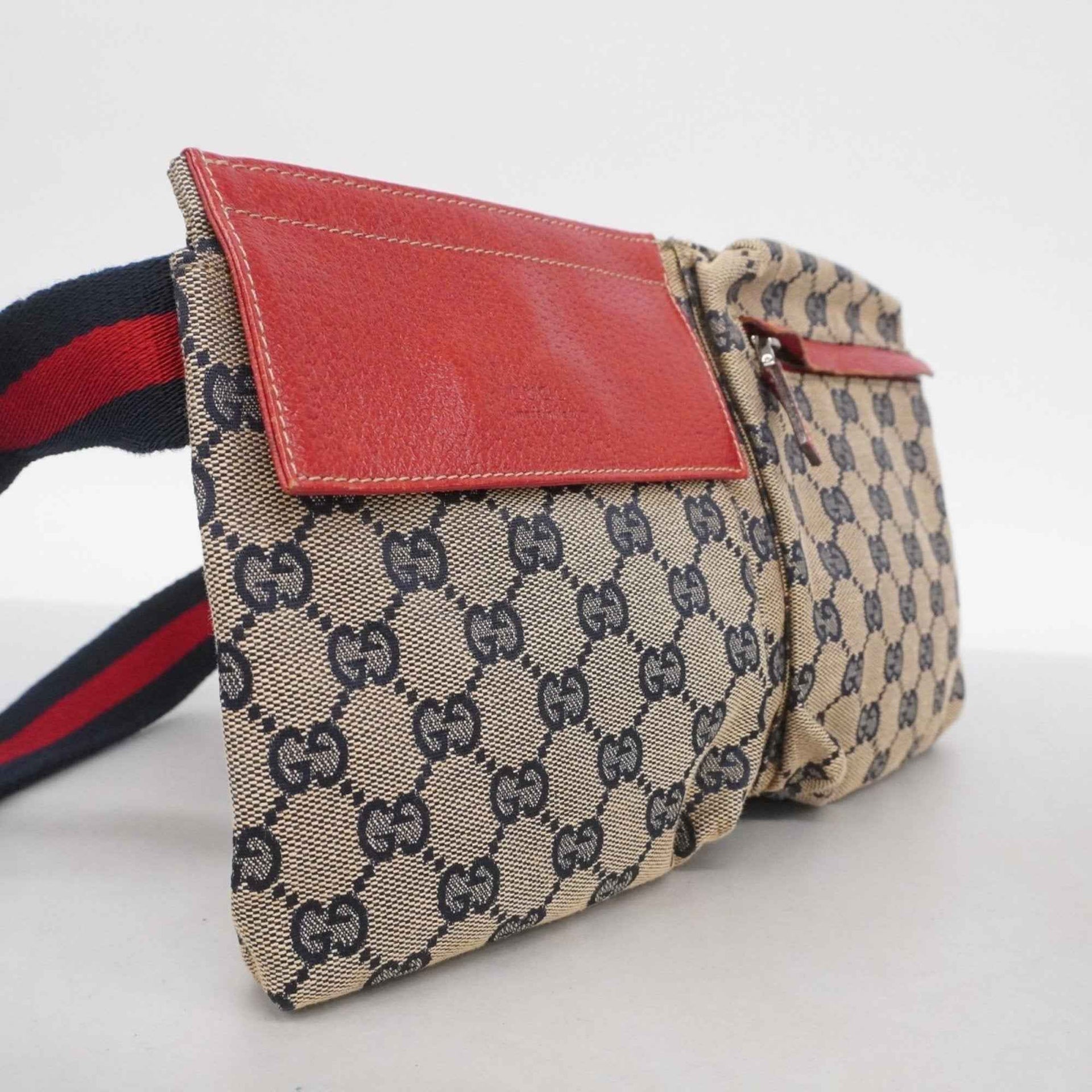 Gucci Waist Bag GG Canvas 28566 Beige Navy Red Men\'s Women\'s