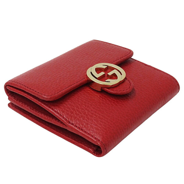 Gucci Women\'s Bifold Wallet with Interlocking G Leather in Red (615525) - Compact Mini