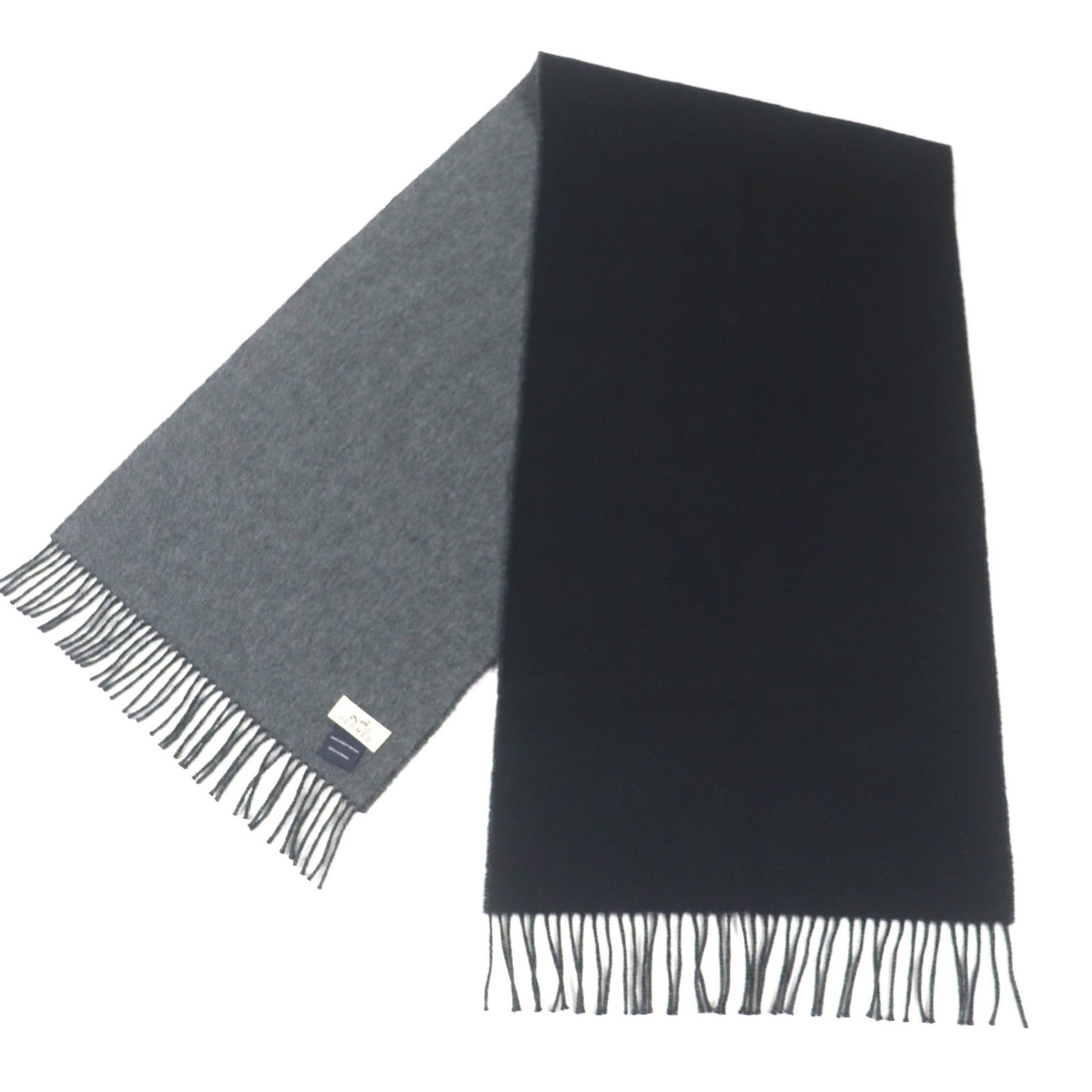 HERMES 100% Cashmere Scarf with Embroidered Logo and Fringe, Reversible, Black or Gray, Made in England, Men\'s
