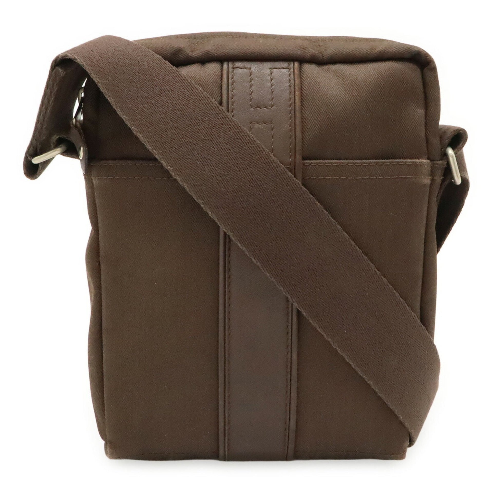 HERMES Acapulco Bandouliere PM Shoulder Bag Pochette Toile Chevron Leather Dark Brown
