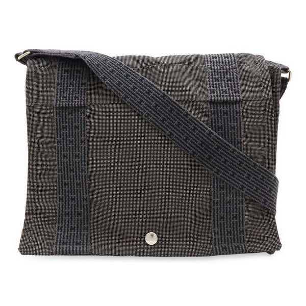 HERMES Air Line Bassus PM Shoulder Bag, Canvas, Gray, Black