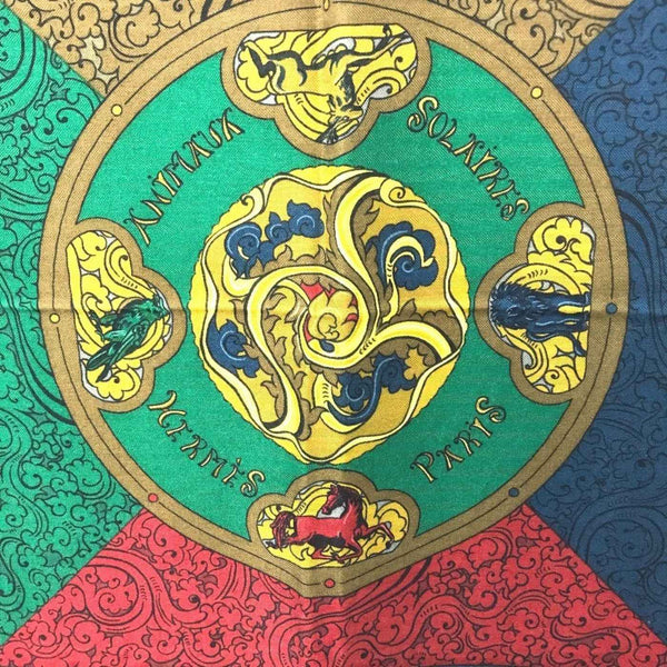 HERMES ANIMAUX SOLAIRES \"Animals of the Sun\" Carre Jean 140 Shawl/Stole/Scarf/Muffler in Silk/Cashmere, Multicolor, Women\'s