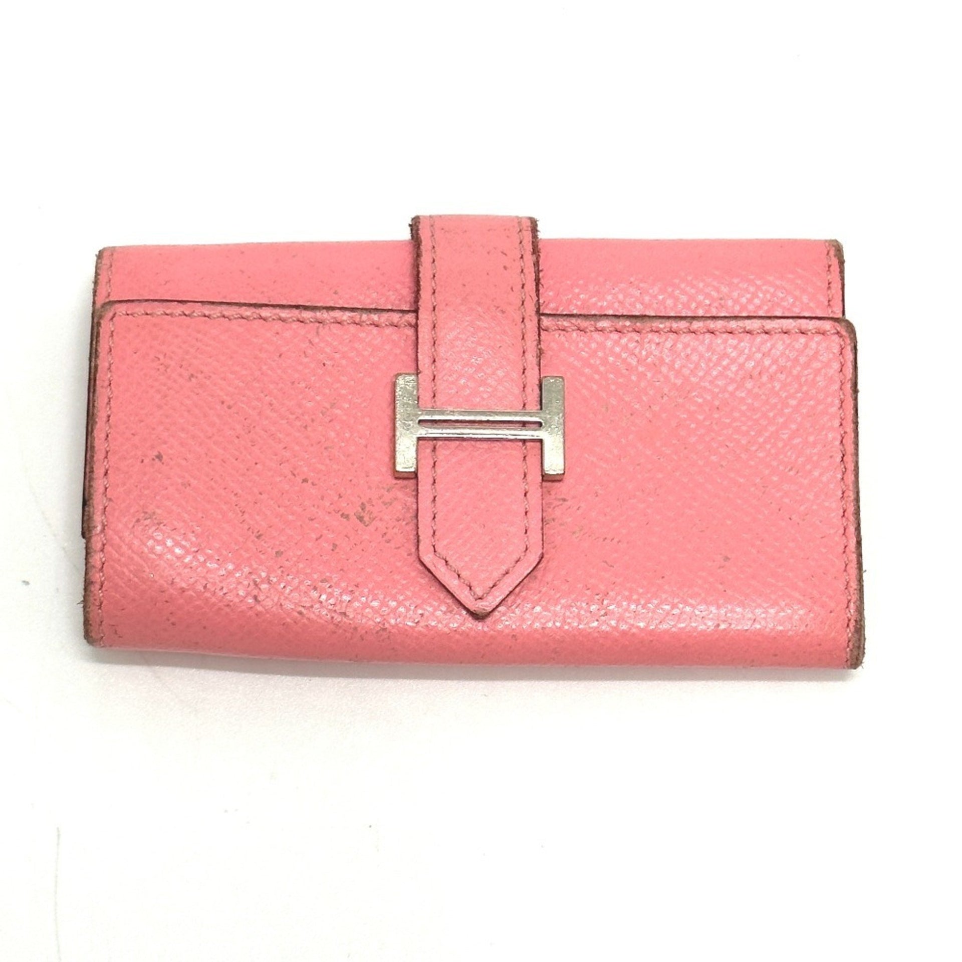 HERMES Bearn 4-ring key case with H hardware, Epsom leather, women\'s, rose confetti, pink