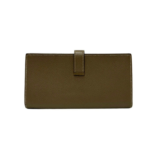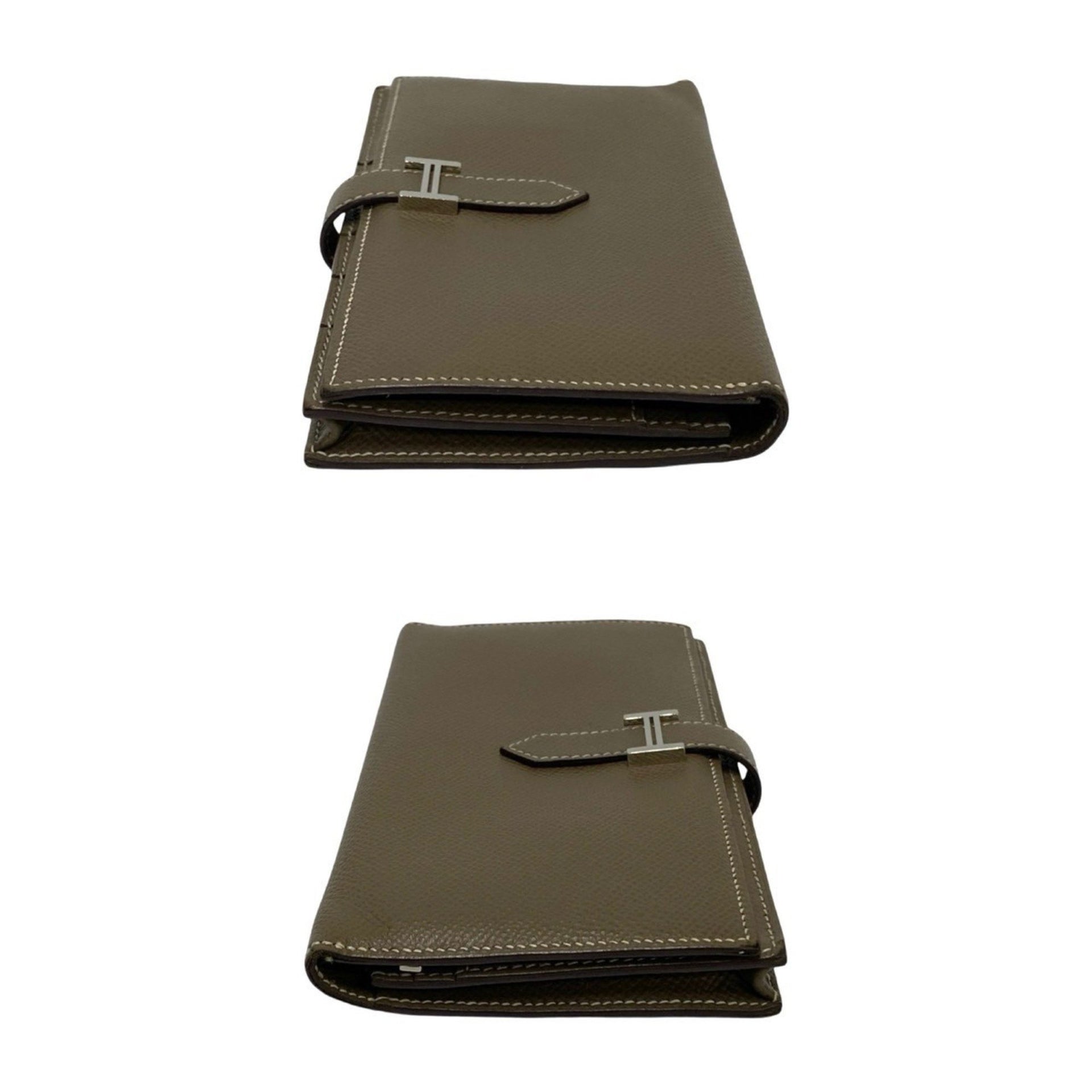 HERMES Bearn Soufflet Logo Metal Hardware Leather Epsom Long Wallet with Coin Purse, Gray, 55678
