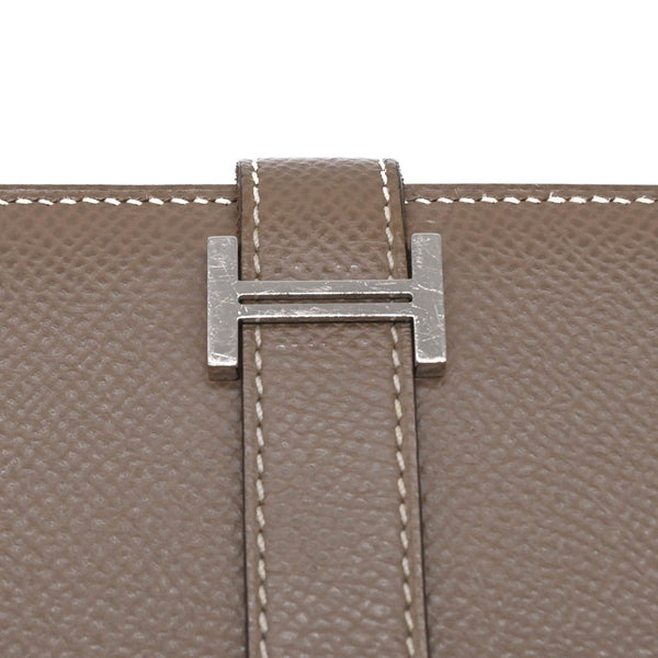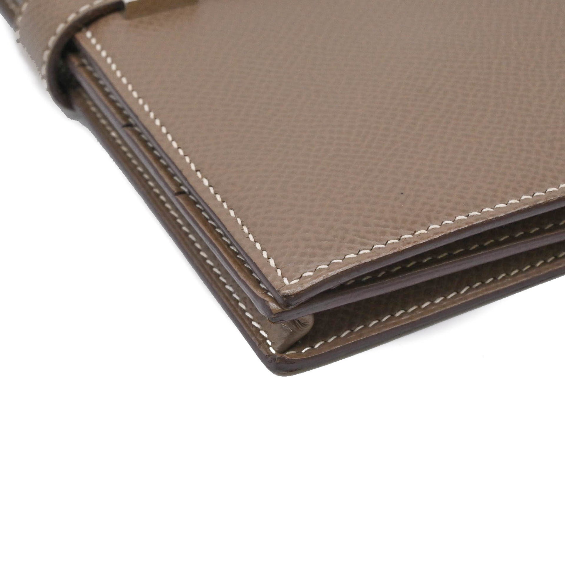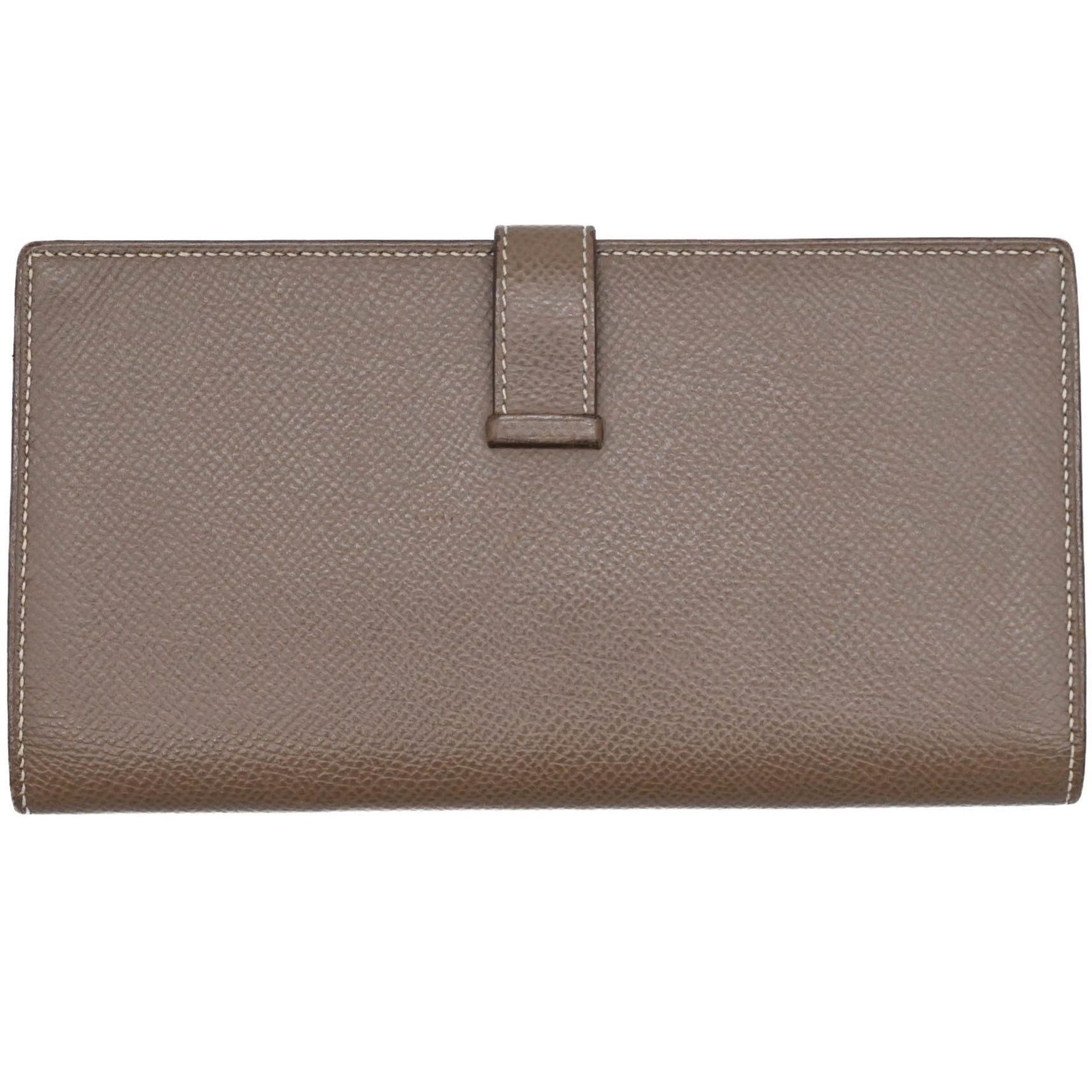 HERMES Bearn Soufflet Long Wallet Epsom Leather Etoupe #D