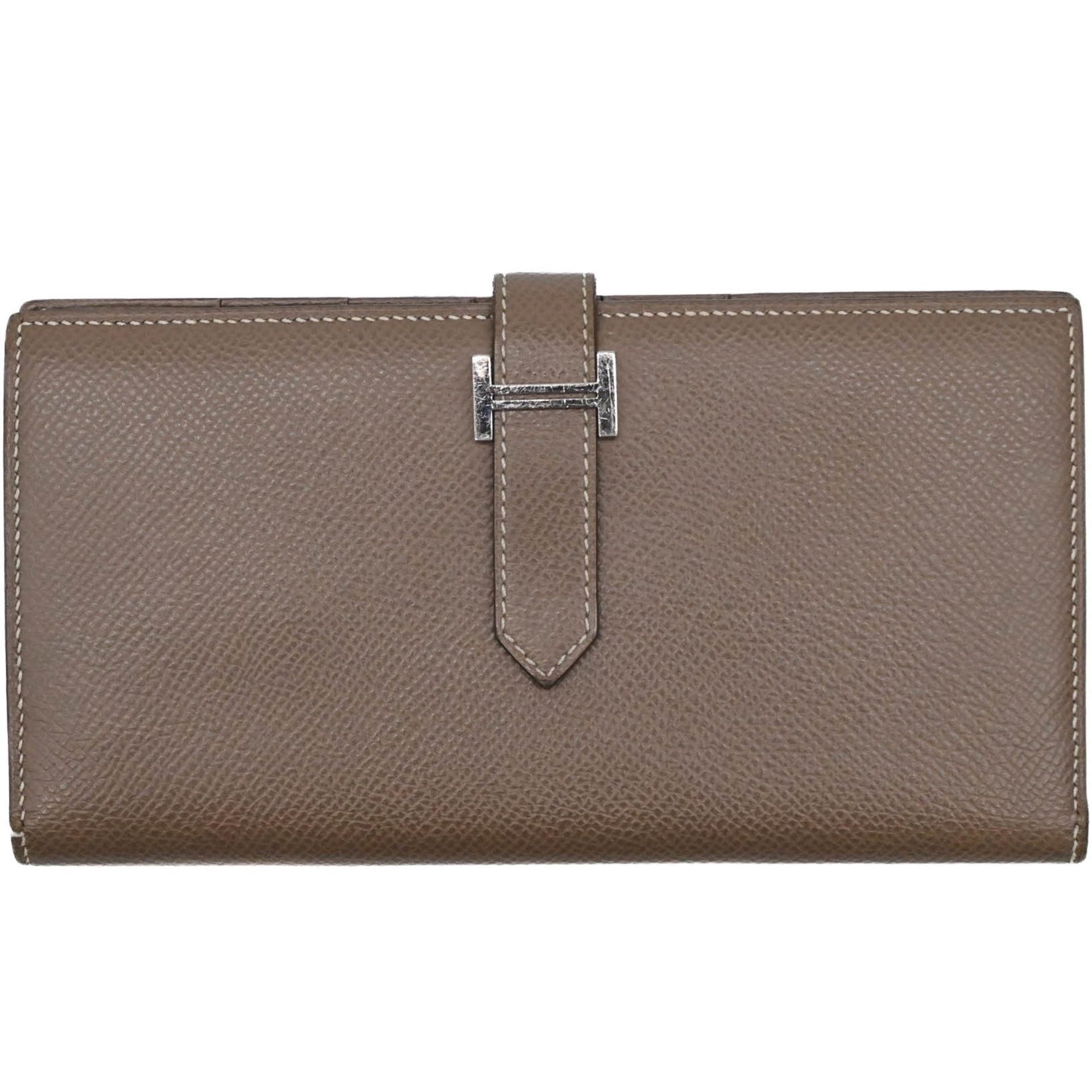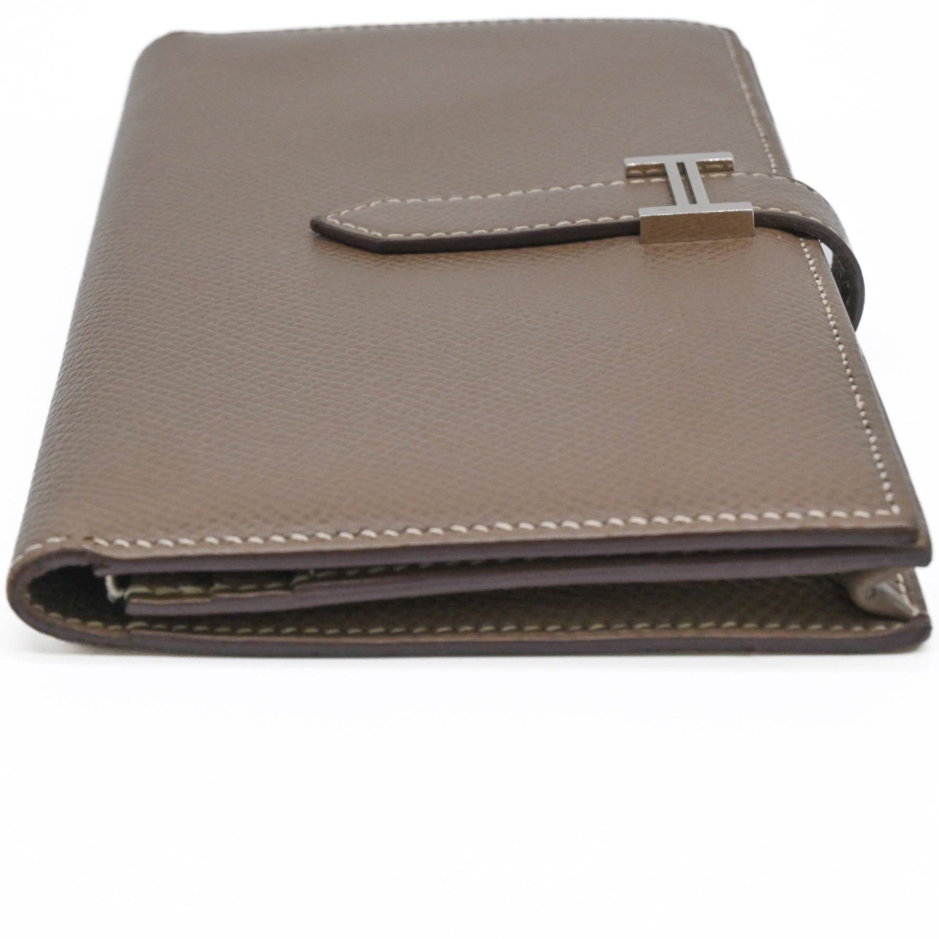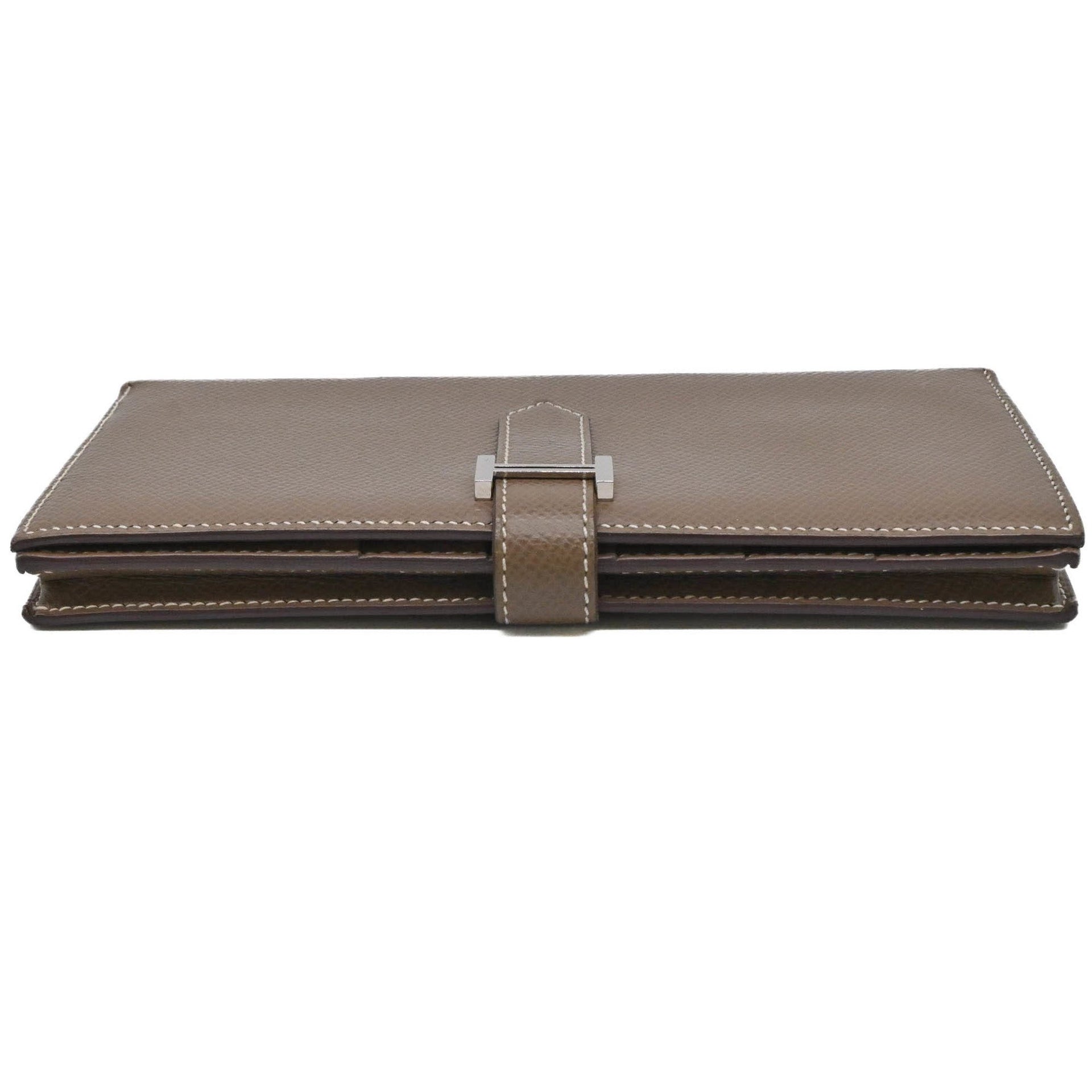 HERMES Bearn Soufflet Long Wallet Epsom Leather Etoupe #D