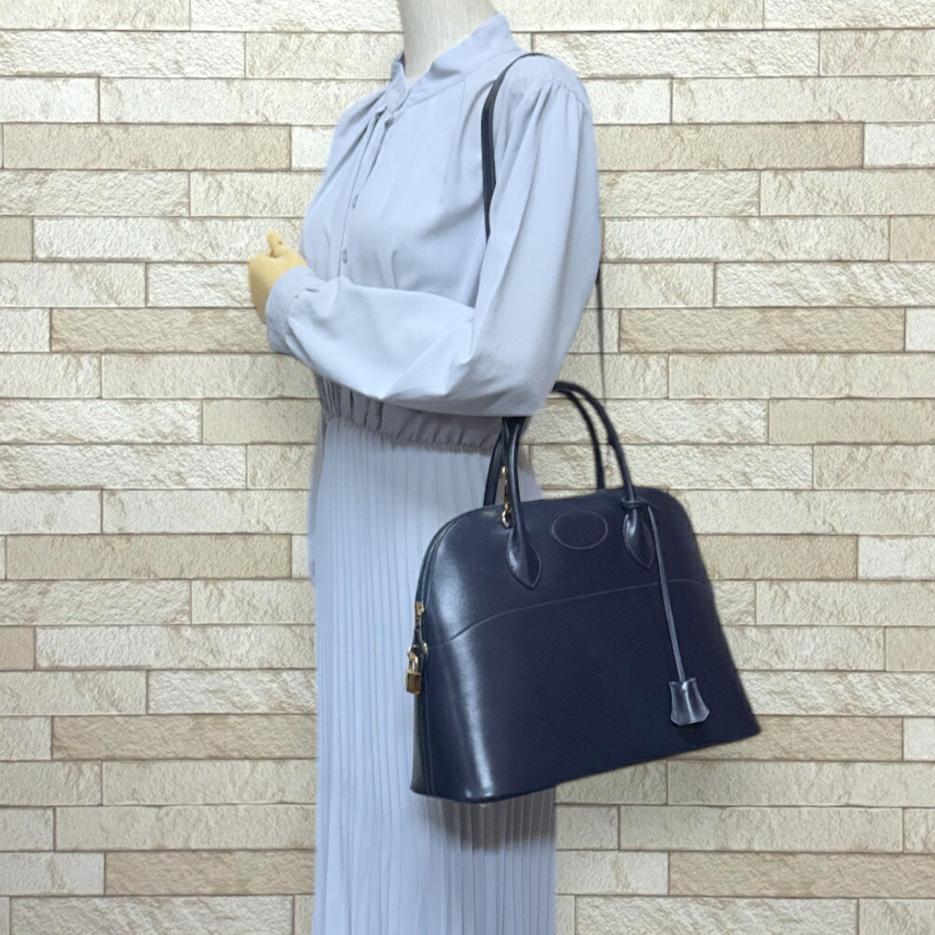 Hermes Bolide 35 Shoulder Bag Box Calf Navy Women\'s HERMES 2way