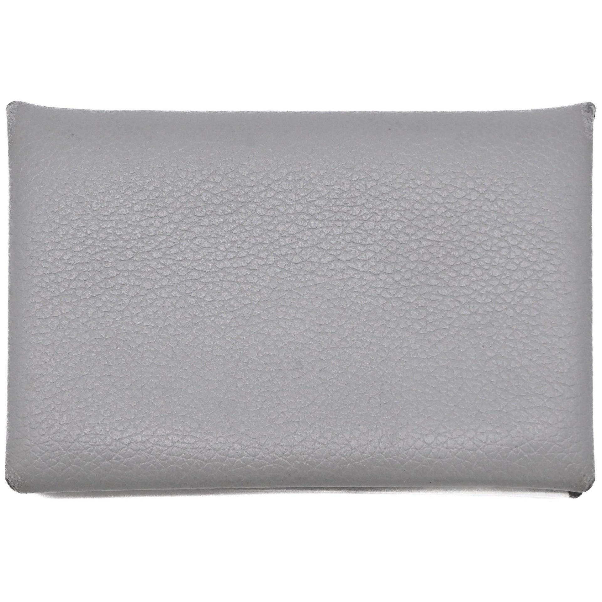 HERMES CALVI Men\'s Evercolor Gray Leather Wallet/Coin Case #W Chevre Mysore Business Card