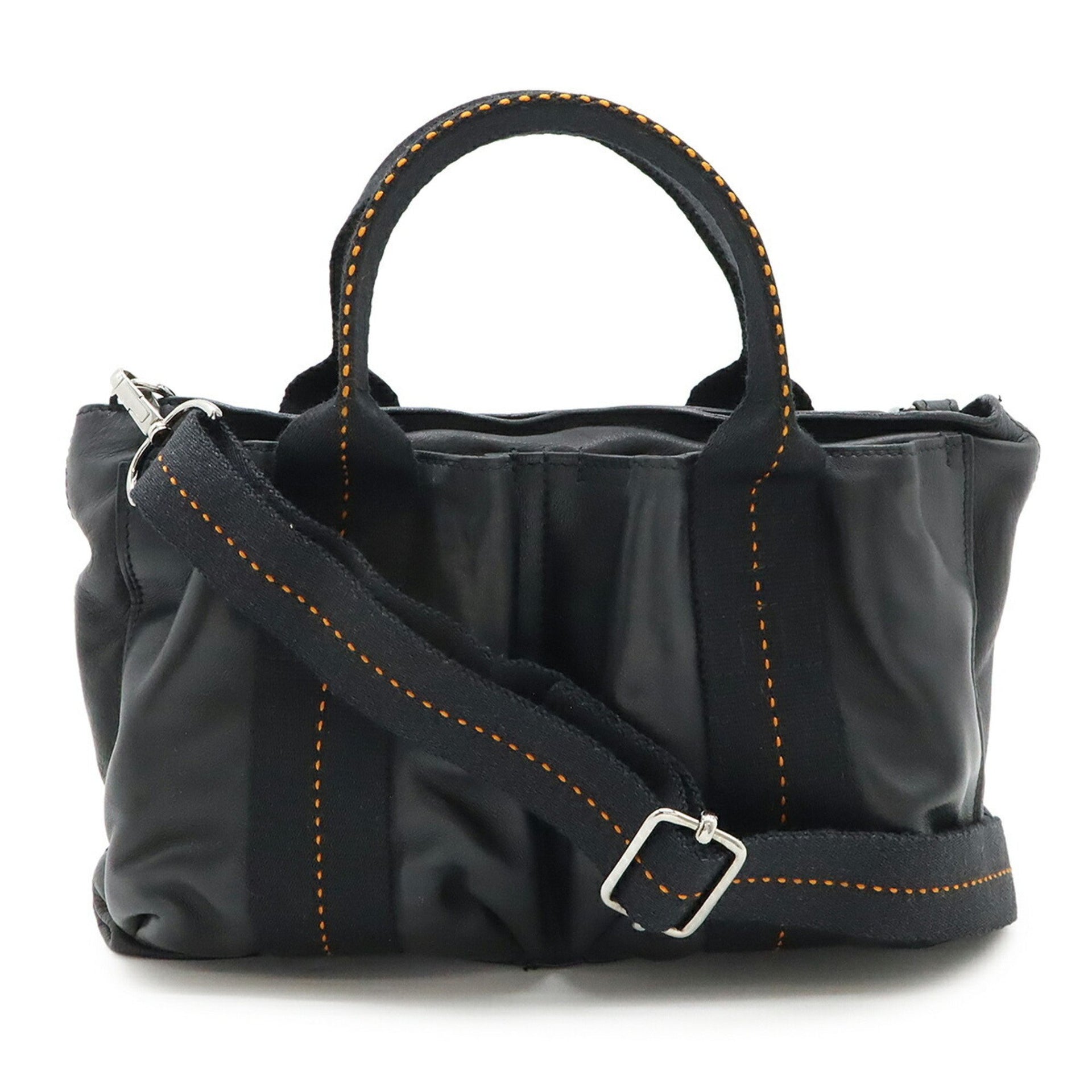 HERMES Caravan Horizontal PM Tote Bag Shoulder Veauderma Leather Black Orange