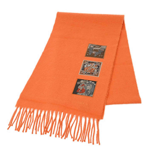 HERMES Cashmere Scarf, Badge Soie, Orange, Women\'s, 100% Cashmere, Unused
