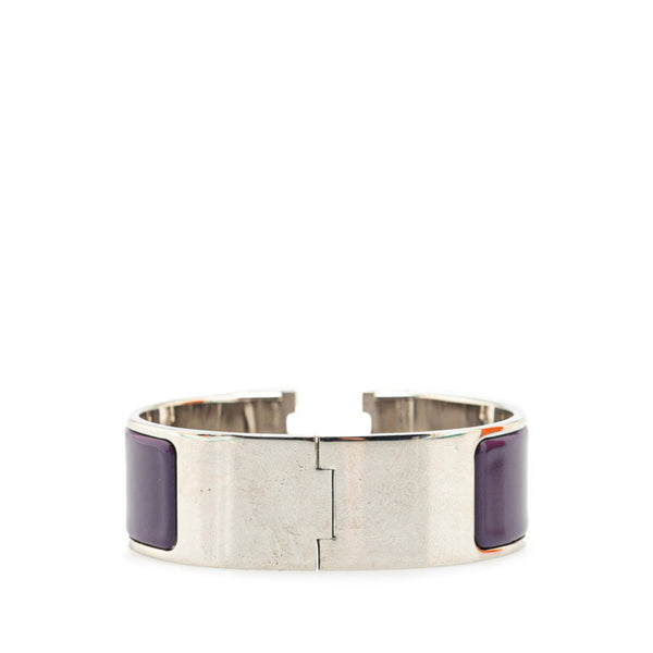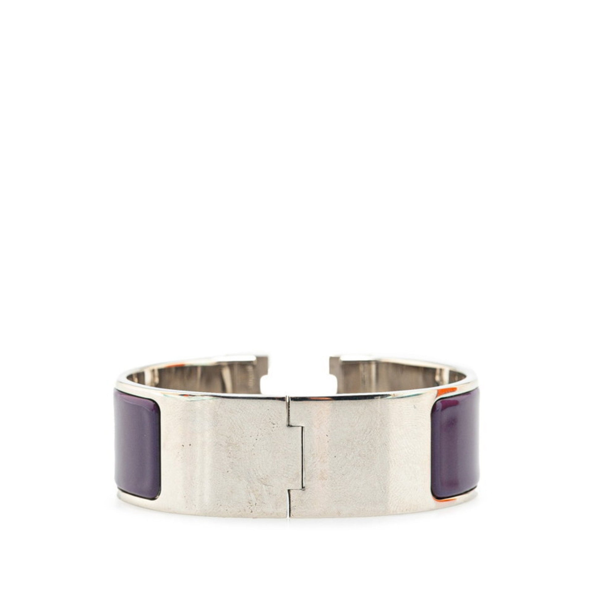 Hermes Click-Clack H PM Bangle in Silver and Purple Metal for Women