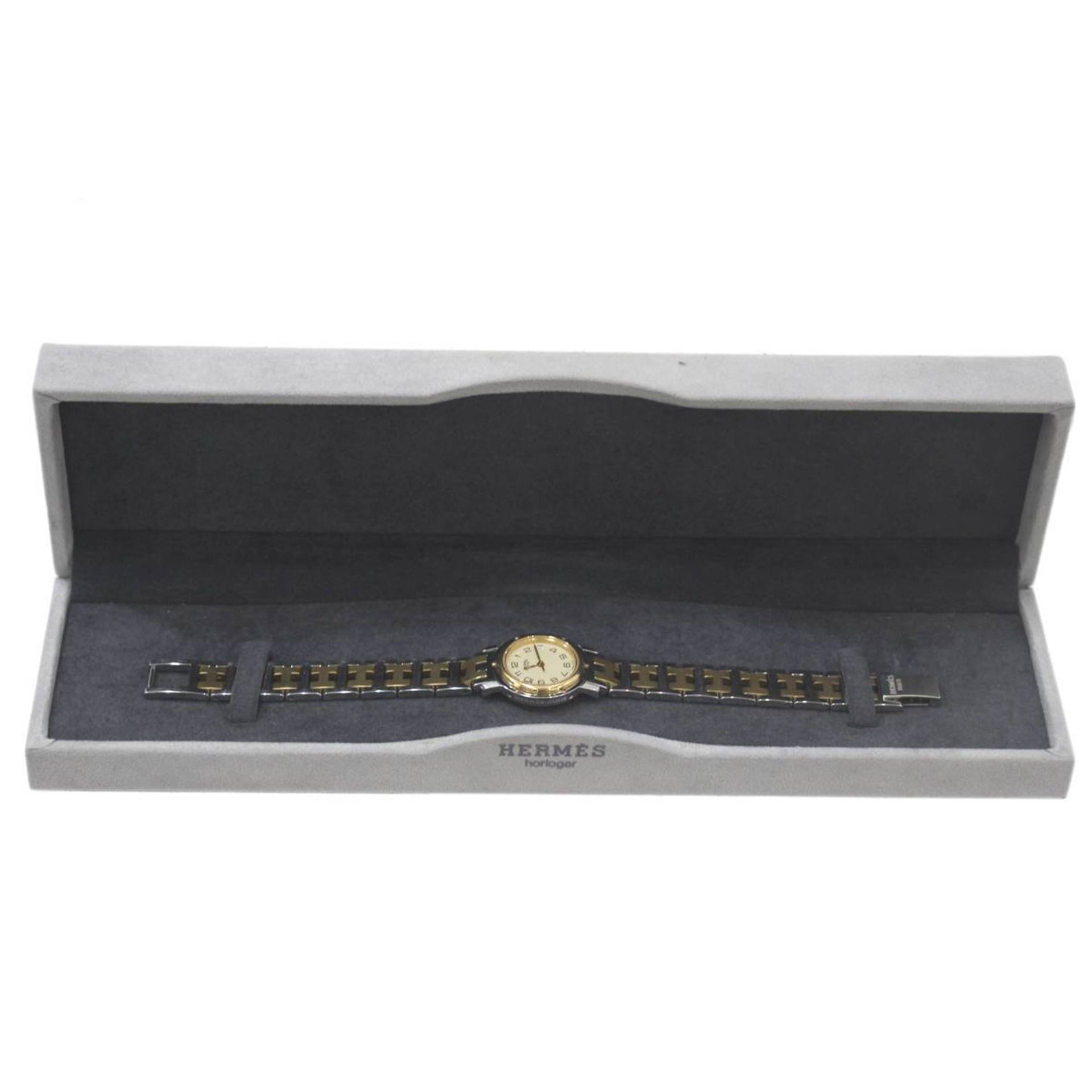 HERMES Clipper Women\'s Watch 838786NL SS Yellow Cream Dial, Quartz Movement