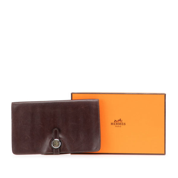 Hermès Dogon MM Long Wallet, Business Card Case, Brown Swift, Women\'s HERMES