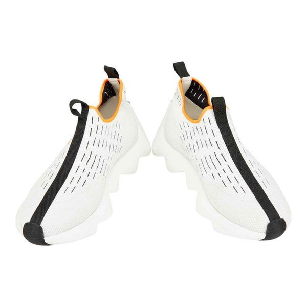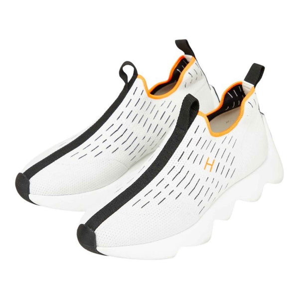 Hermès Eclair Slip-on Sneakers, Size 37, White, Black, Orange, Knit, Women\'s, HERMES