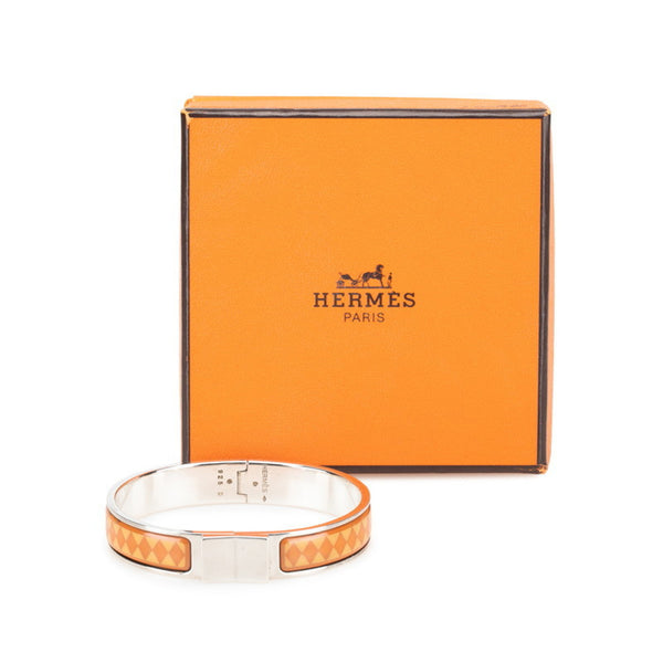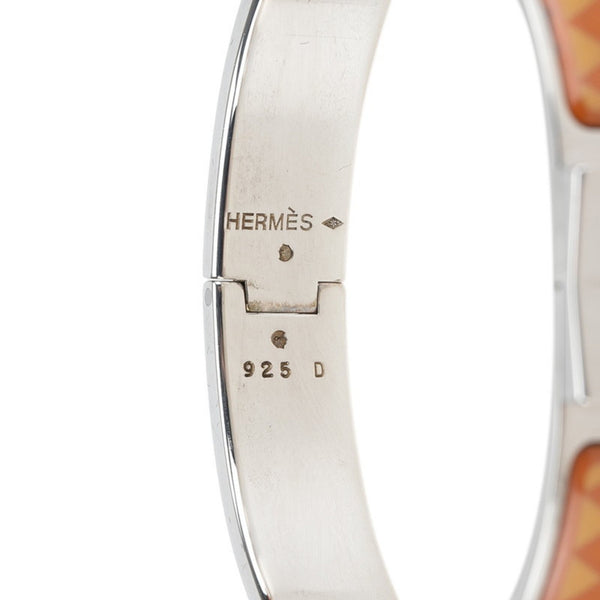 Hermes enamel bangle in silver, brown, and beige metal for women.