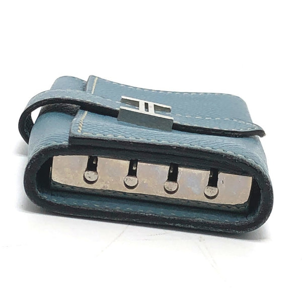 HERMES Epson Bearn 4-ring key case with H hardware, women\'s blue jean.