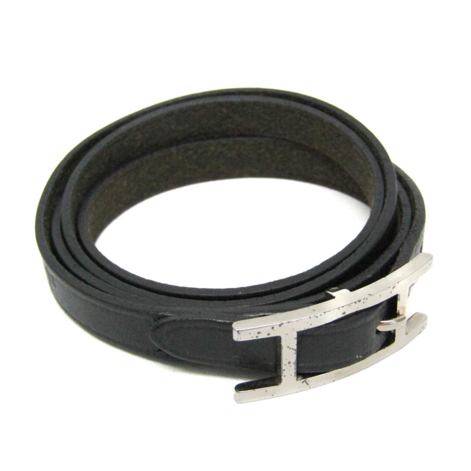 Hermes Hapi 4-row Bracelet Choker Leather,Metal Bangle Silver,Black